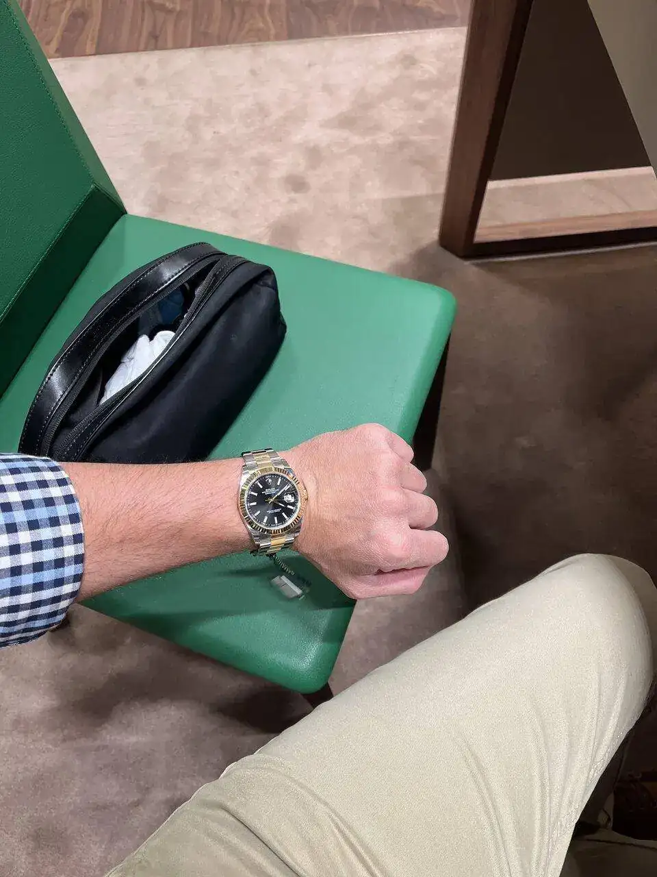 El impacto visual que me causó en directo es de pequeño… pero para que te hagas idea l diferencia de tamaños, no son modelos que me gusten pero me los probé en la boutique rolex para ver qué tamaños me sentaban mejor, DJ en 36 y 41 y en esta prueba sin duda creo que 36 mejor.