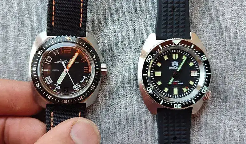 Ese vostok es un pelín mas grueso todavía y eso que lleva un calibre sin masa oscilante y una tapa mas baja para quitarle mas de 1mm. de grosor. Pero aun así se acopla mucho mejor a la muñeca y para mi es infinítamente mas cómodo de llevar que el steeldive.