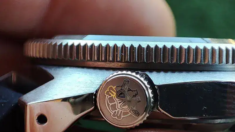 La calidad general que aparenta, los acabados, el cierre de la corona a rosca, la alineación del bisel son de primera, la verdad es que concuerda con lo que se dice por ahí sobre esta marca, ahora bién... hay un par de cosas que no me han gustado tanto:
