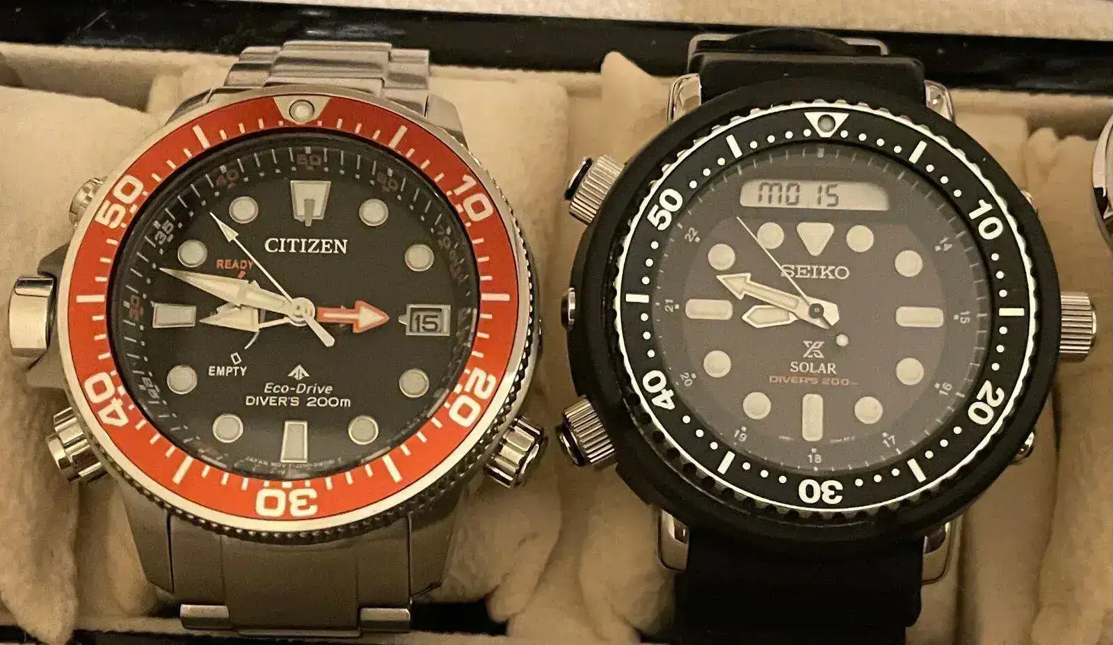 Si buceases el citizen solo serviria como backup, pero a pesar de ser un modelo mitico de la marca y que estaria bien en cualquier caja ... no destaca demasiado mas que para los aficionados a la relojeria, el Seiko da gusto verlo seas o no aficionado.