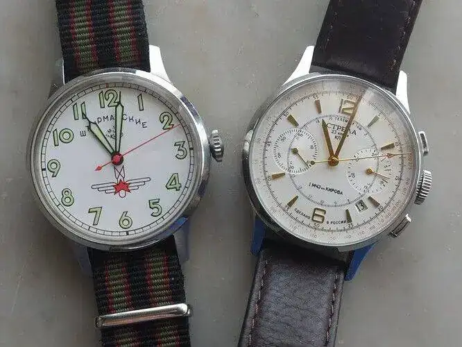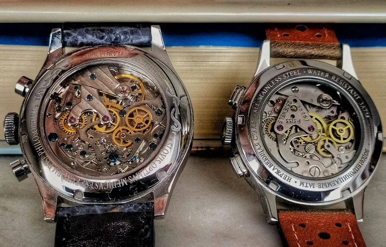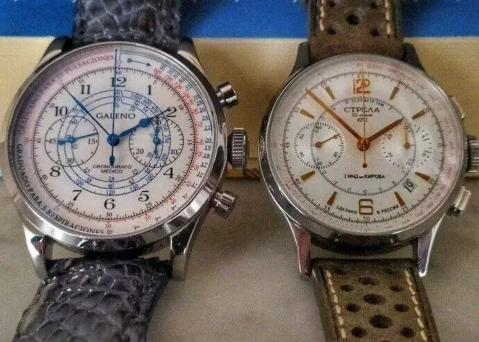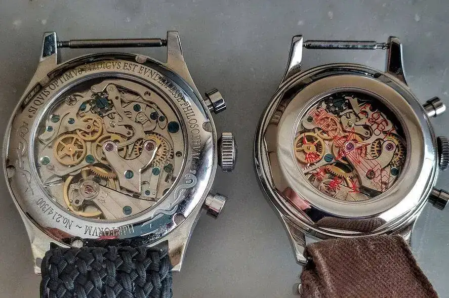 Pero vamos al tema que titula el hilo. He querido poner, uno al lado del otro, dos calibres crono bicompax míticos (y, uno de ellos, muy popular, por ser el chino que emplean muchos relojes): El Poljot 3133, frente al ST-19 (heredero del Venus 175).