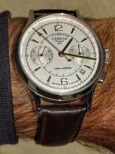Hace poco, que ha habido una gran incorporación a mis relojes: Un Poljot Strela. Parecido al que llevó Alexei Leonov en su primer paseo espacial (aunque el reloj no llegó a salir al espacio).