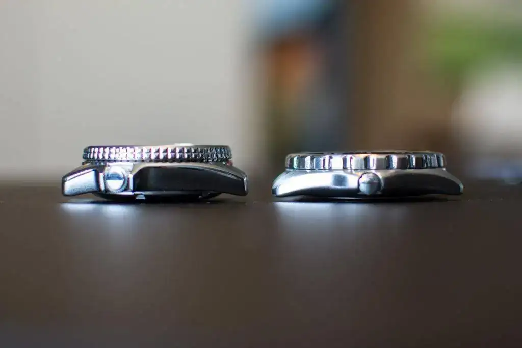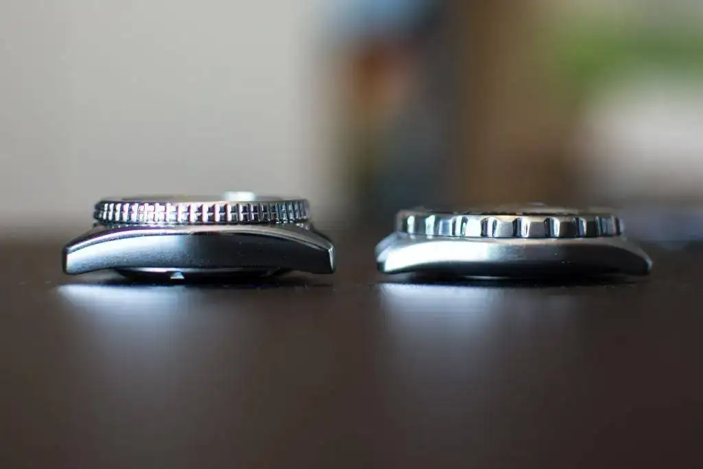 Ahora comparamos la altura. Se puede ver que el Seiko es más cabezón: