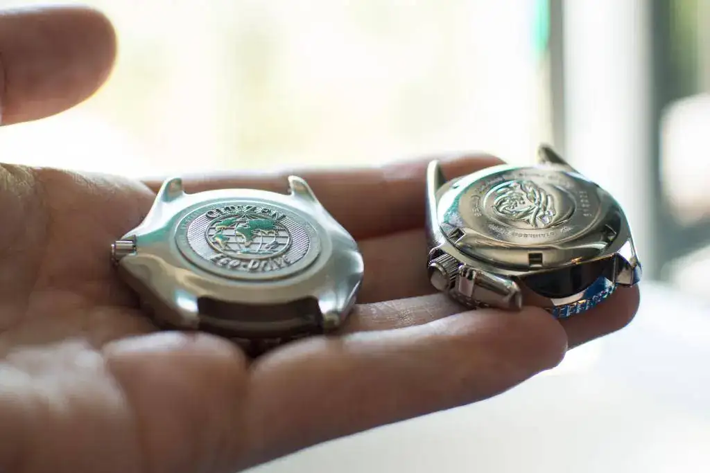 3. LA CAJA MONOBLOQUE. No se si algún día tendré problemas para encontrar un relojero que le meta mano, pero desde luego, que sea monobloque me encanta. Gracias a eso es tan delgado y, además, el grabado trasero es magnífico. Un deleite, pasar el dedo cuando no lo llevo puesto. Hace del Citizen un reloj muy especial.