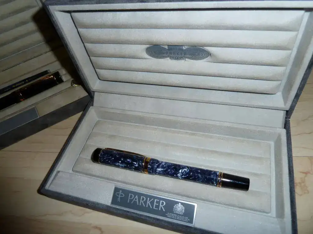 Pongo en venta esta Parker Duofold Centennial del primer trimestre de 1990 (IIIQ). Antiguo stock de librería que cierra por jubilación. No ha estado expuesta a la luz solar ya que llevaba años en la trastienda. Nunca ha sido usada. Compré las dos que tenía: esta que pongo en venta y otra más pequeña, el modelo International que está fabricada según el código marcado en el cuerpo en 1995. He decidido que con la pequeña tengo más que de sobras.