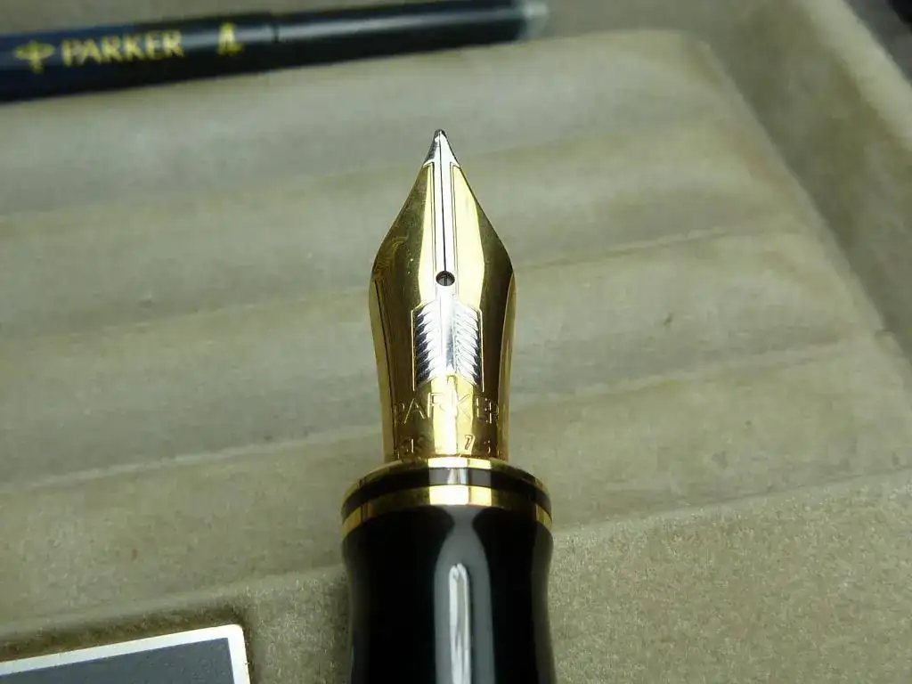 Resina de calidad en color negro con detalles dorados. He leído que es un plumín rígido y que se desliza con mucha suavidad sobre el papel.