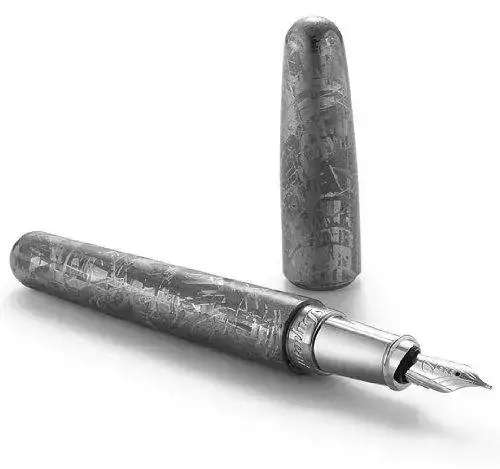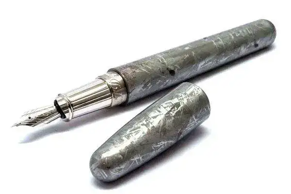 Desde luego es un material original para hacer el cuerpo de una pluma, aunque a la vista de los muchos objetos decorativos que se tallan sobre estas rocas espaciales, esta es solo una aplicación más. No obstante, es llamativa y pretende ser muy exclusiva.