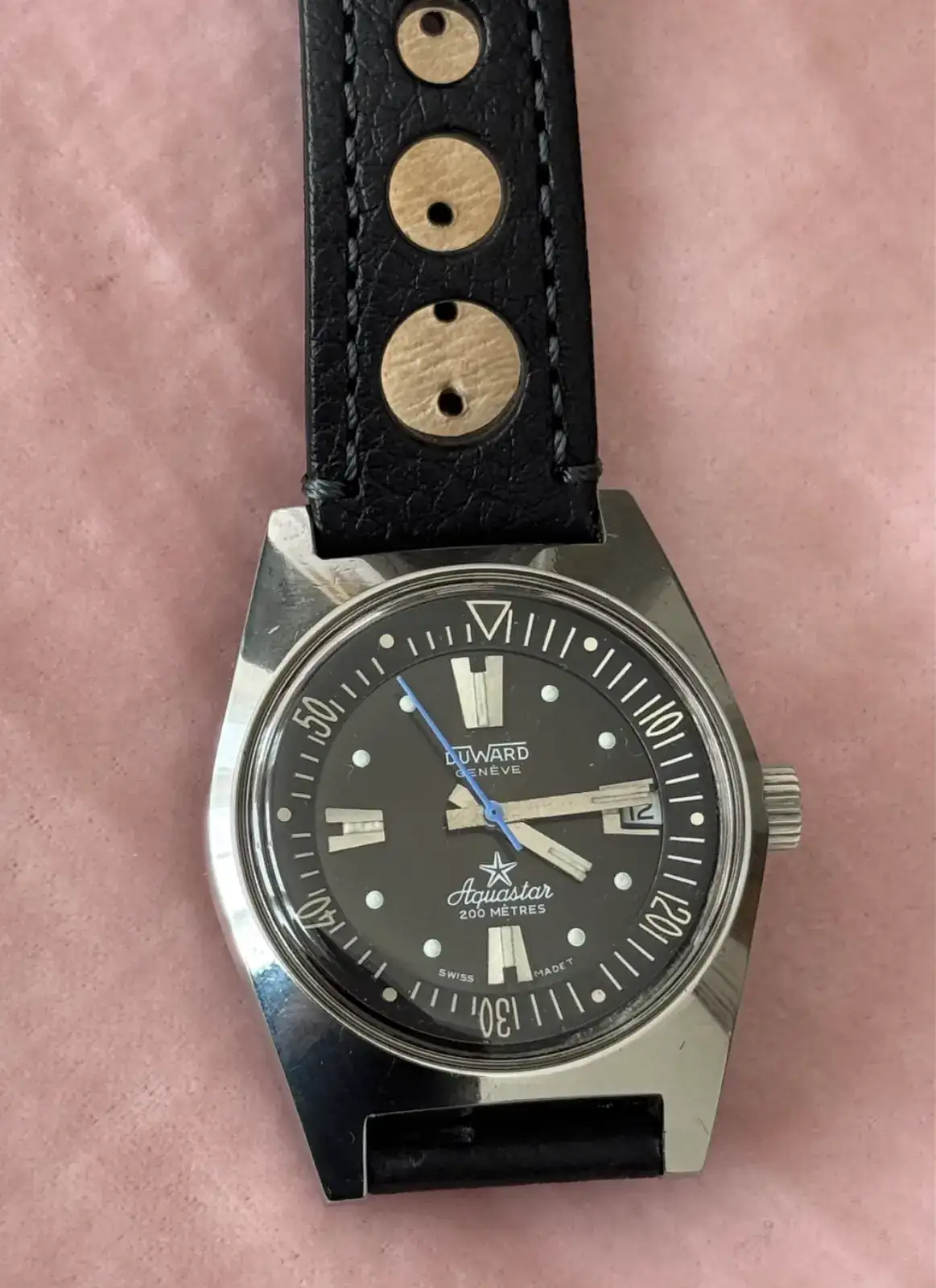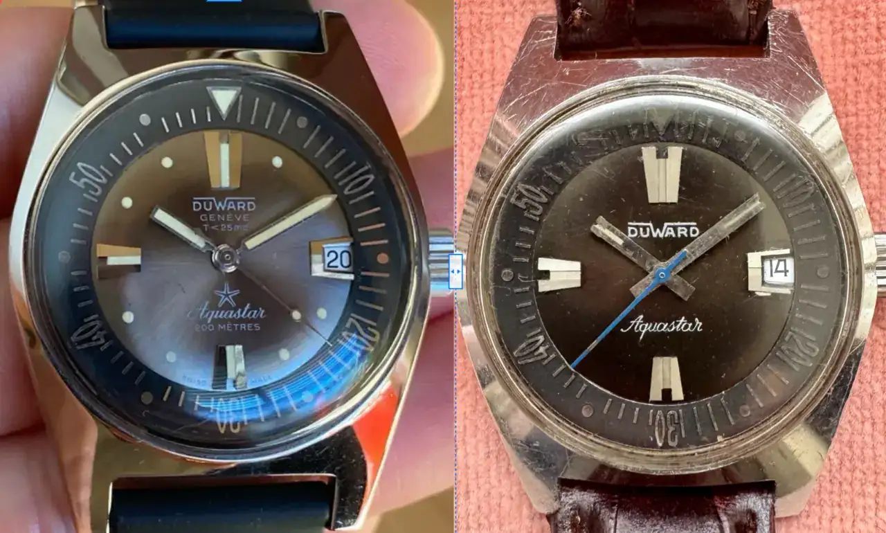 Comparo con una foto de uno en venta, las manetas son diferentes pero tiene una geometría que se parecen a los puntos de los cuartos con el dentado. El bisel interior gira bien.