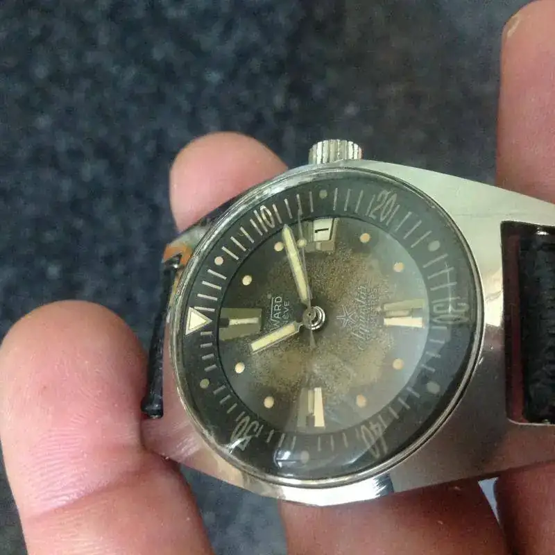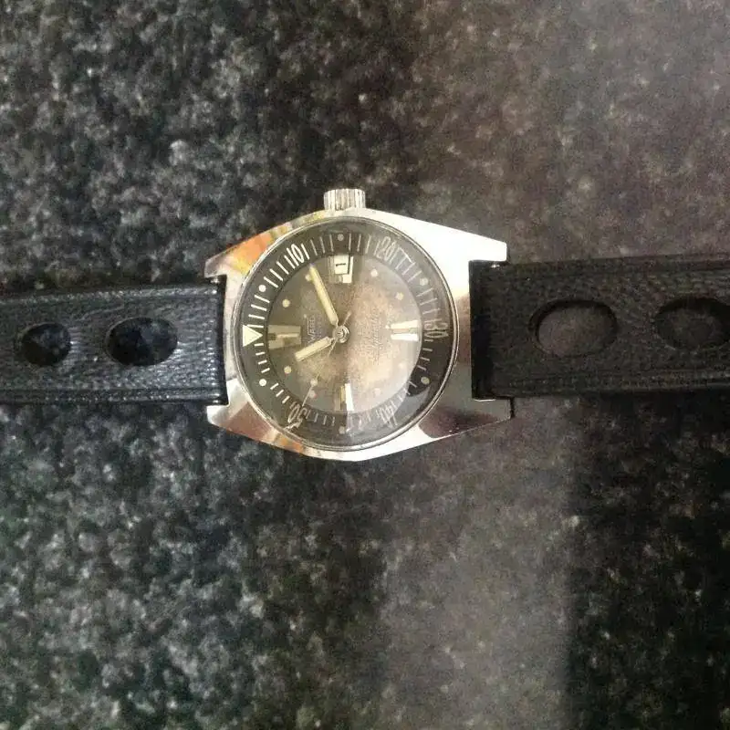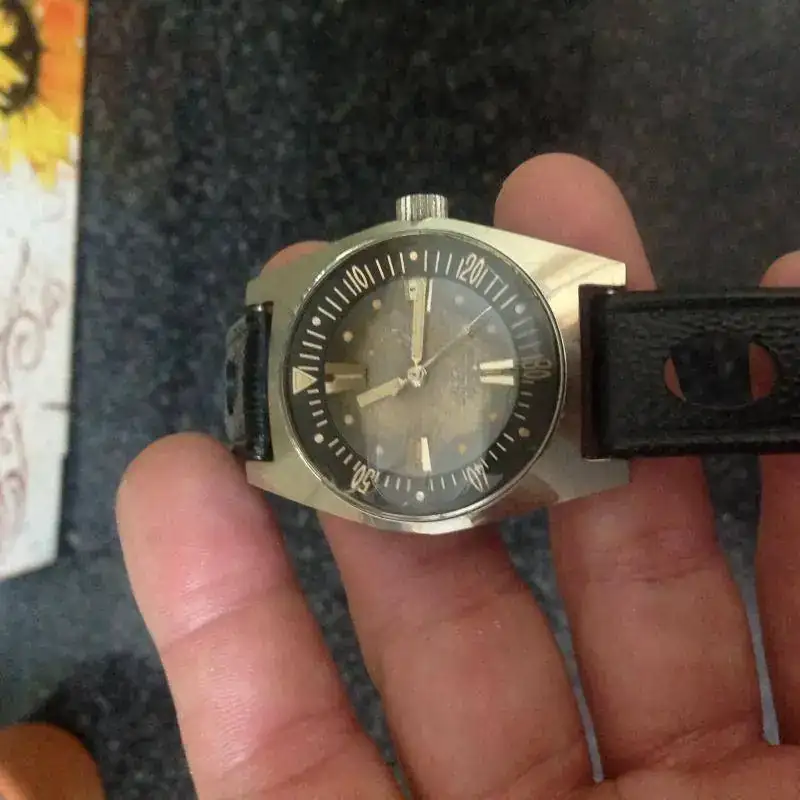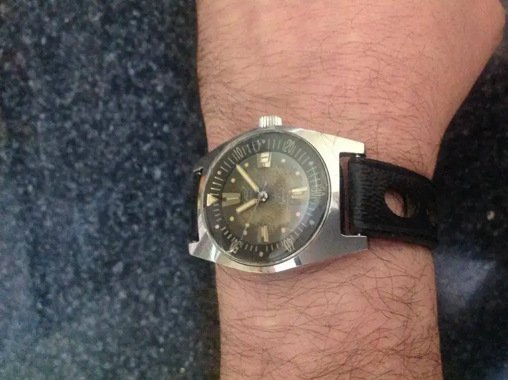 funciona muy bien y he notado que para ser un vintage tiene una reserva de marcha muy buena, bisel interno totalmente operativo (ya sabeis lo complicado que es encontrar uno en buen estado) y la esfera, como es habitual en estos modelos, ha adquirido una patina que en mi opinión le da su toque vintage... la correa no estoy seguro si es la original, pero es de la época seguro.