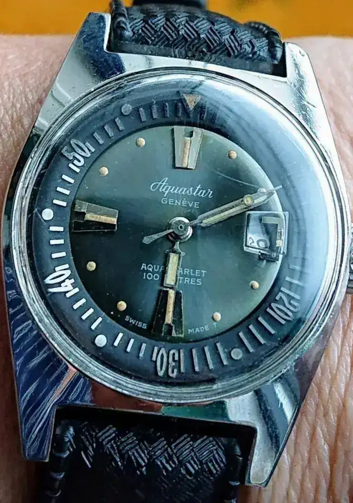 Yo creo, el mio es el primer Aquastar sobre 1965 y lleva el bisel por dentro. Con cada movimiento de la corona gira tambien el bisel interior, muy seguro para buceo no lo veo esto.
