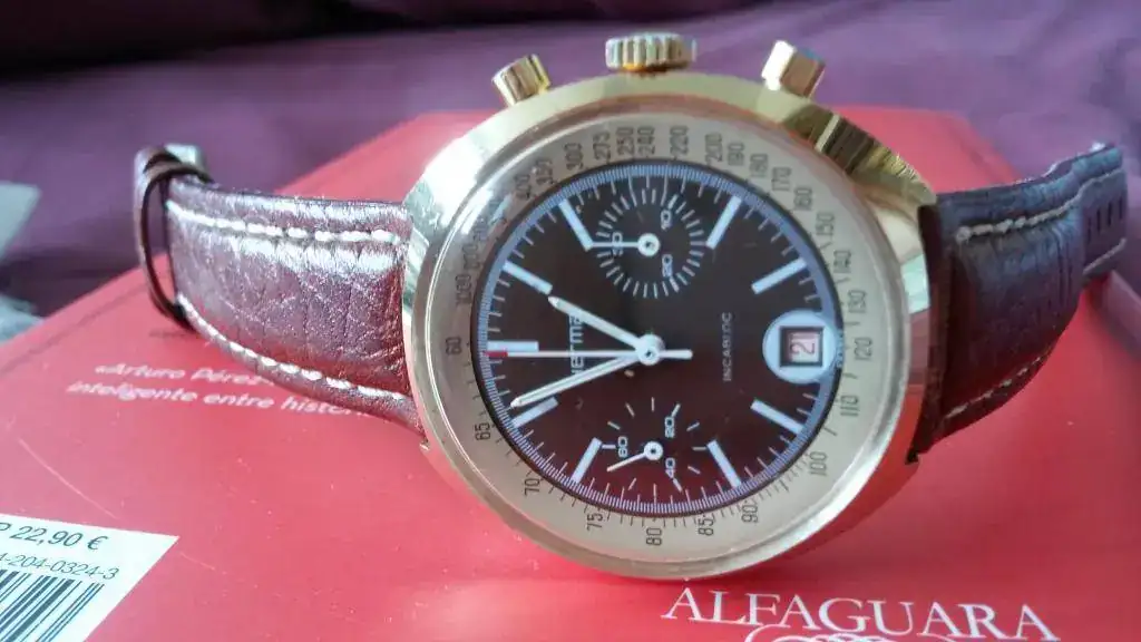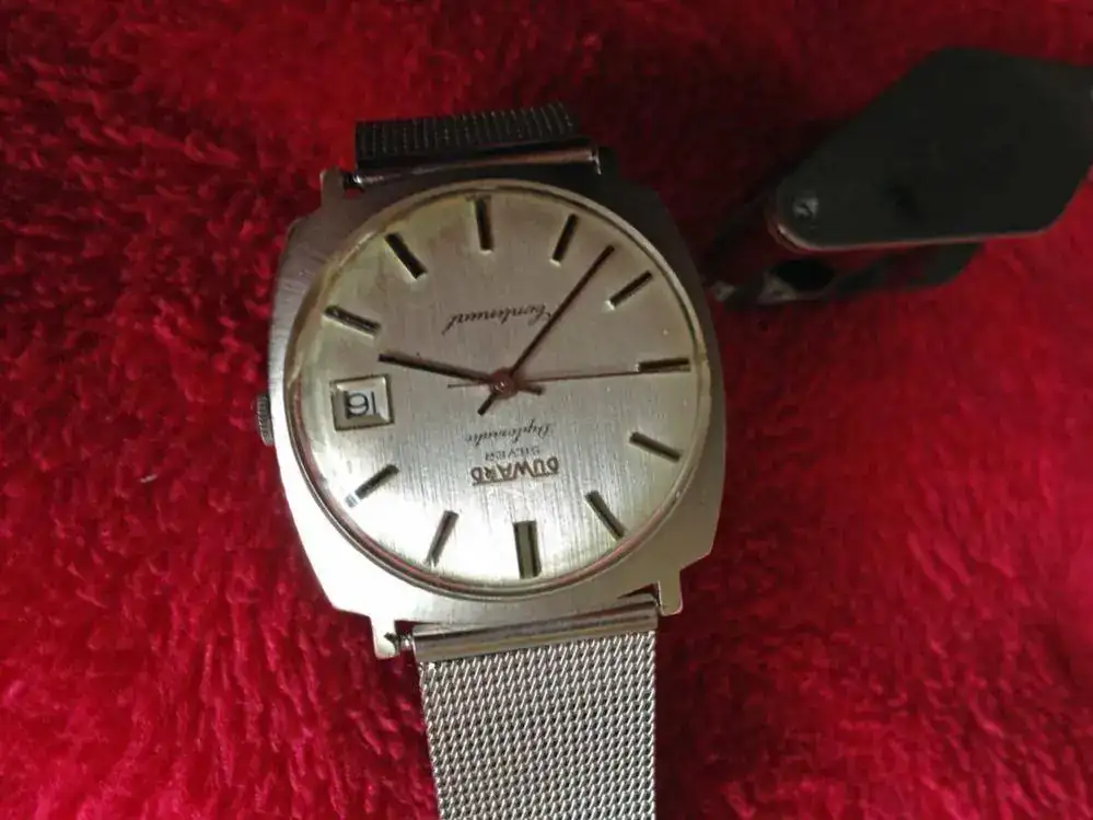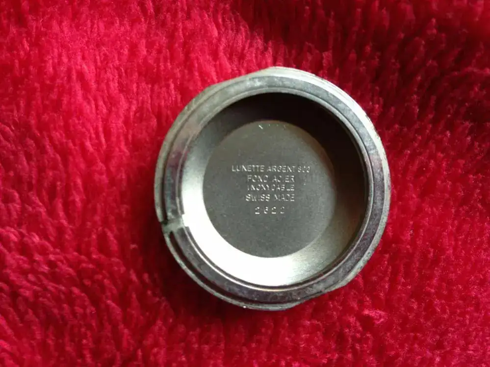 La parte superior de la caja es de plata 800 y la tapa de acero. La milanesa no tiene pinta de ser original del reloj.