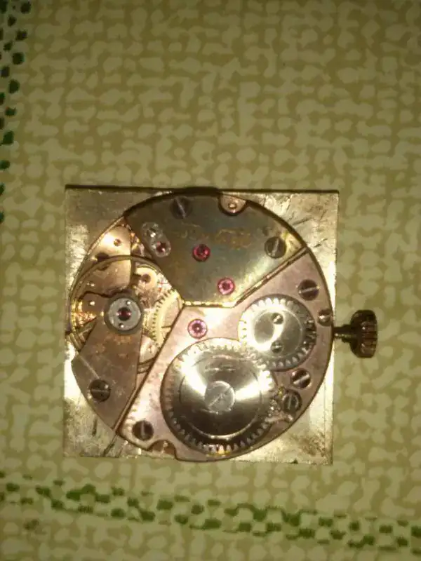 Lleva un movimiento Peseux 320, con una marcha correcta. Y caja de acero, aunque el frente es, segun indica, plaque G10.