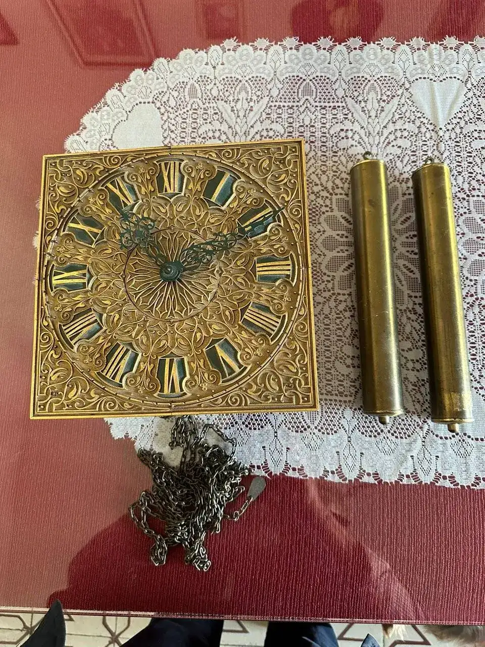 Os dejo unas fotos del reloj y os pediría por favor si sabeis como y donde puedo conseguir las piezas o como hacerla, y en el caso del pendulo, como adaptarle otro.