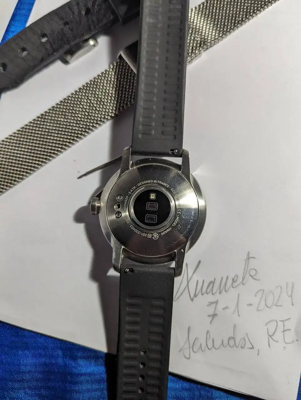 Pongo a la venta este completo e-watch con apariencia de reloj convencional, ya que tiene agujas funcionales y pantalla digital. Es el modelo Scanwatch de la casa francesa Withings.
