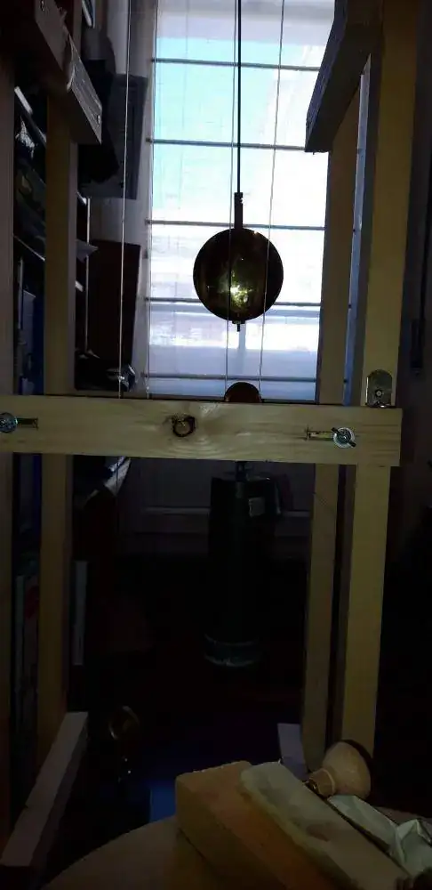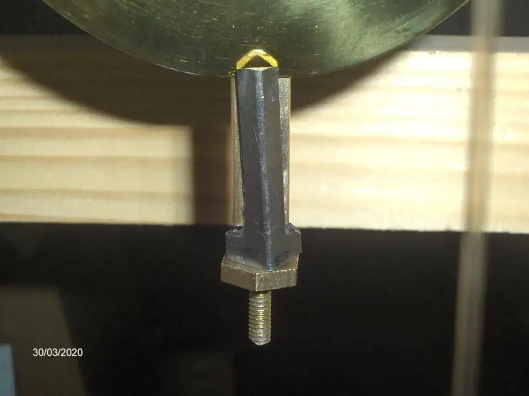 De las piezas compradas del péndulo, tuve que hacer bastantes modificaciones. Primero las roscas tanto en la parte de la lenteja como en el de la suspensión , aunque se supone era todo estaba preparado para rosca 1/8 Witworth) no roscaba bien, he tenido que meter teflon para solventar el problema.
