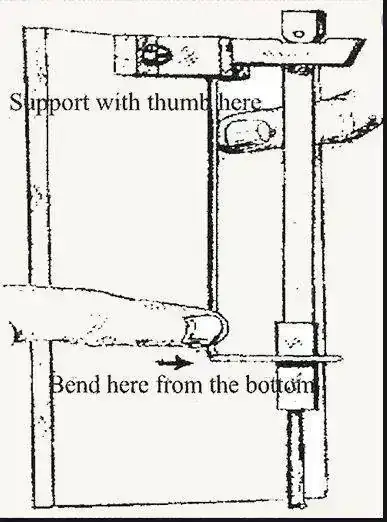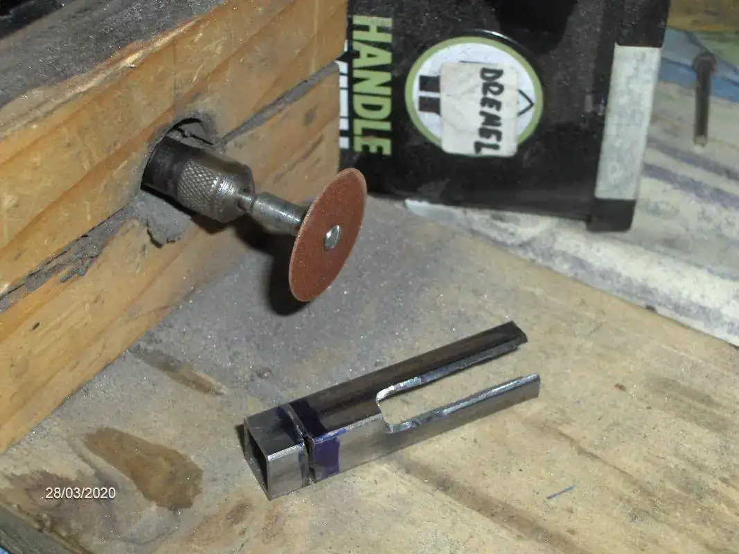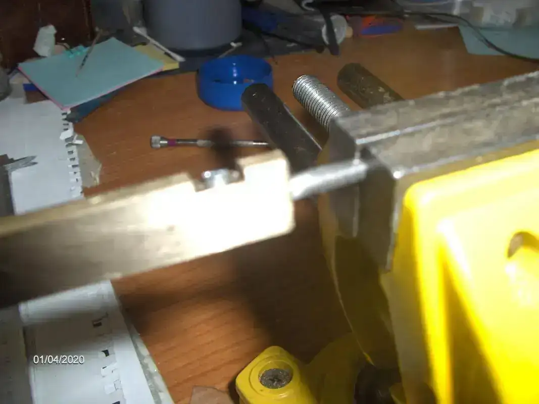 Lleva ya en marcha varios días sin problema ninguno, aquí se ve detalle del doblado del tenedor de la suspensión. No hay embrague del eje con el ancora, con lo que entiendo este es el método correcto para ponerlo en marcha.