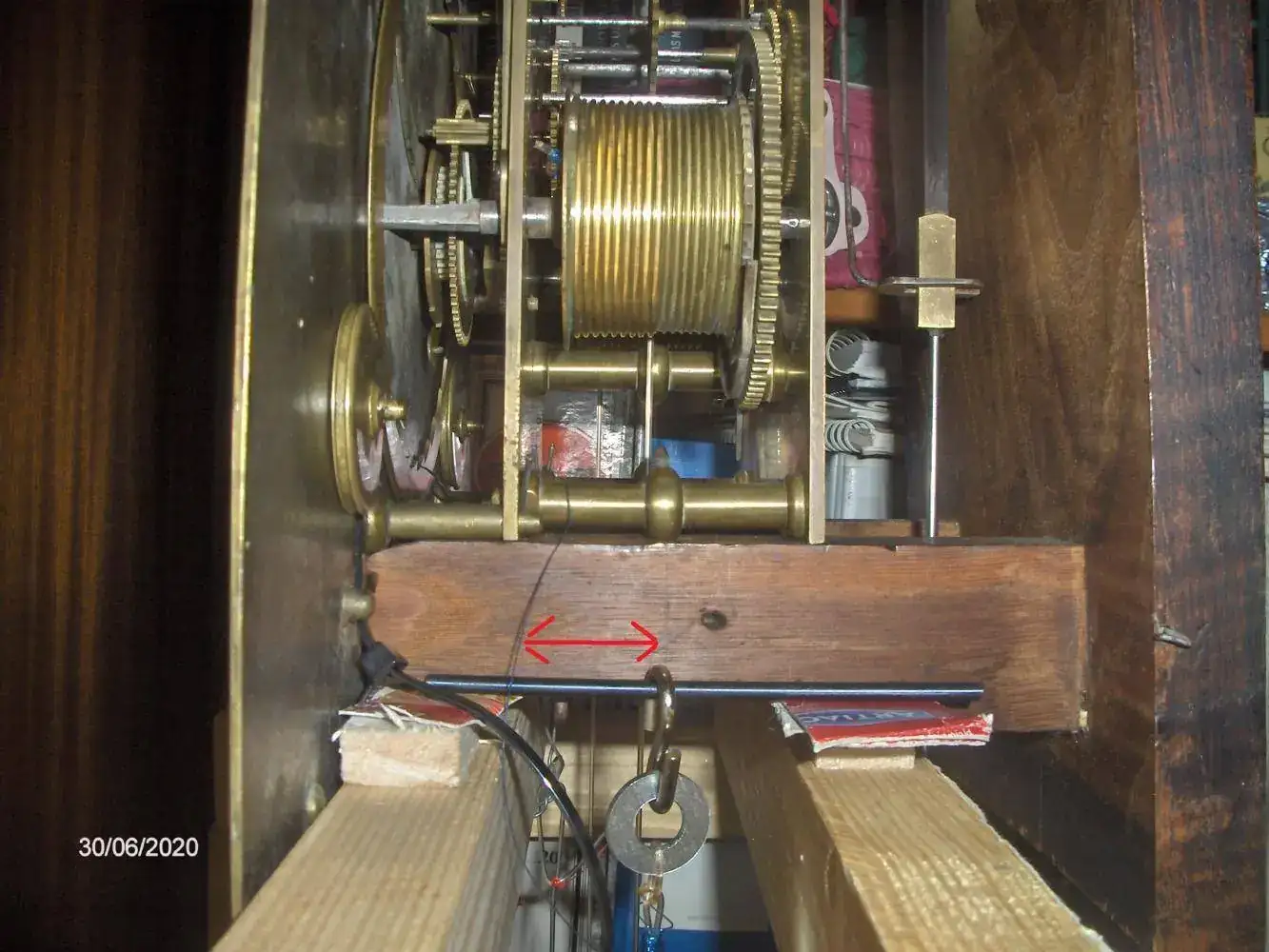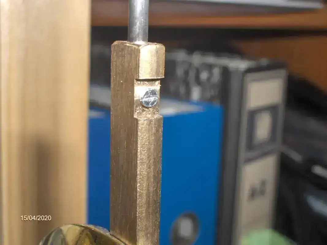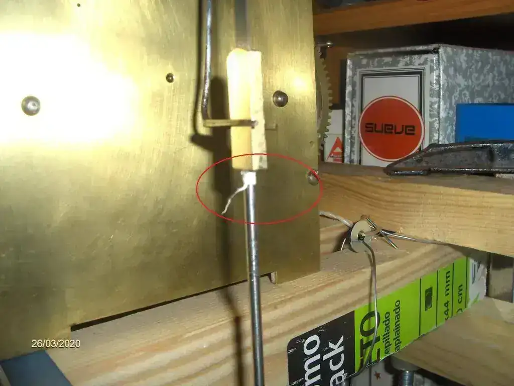 Puesto en marcha retrasaba unos 10 min/hora, el problema es que el tornillo de regulación de la lenteja está arriba del todo, no puedo acortar mas. La solución correcta y profesional seria cortar el vástago para reducir su longitud y hacer una nueva rosca, pero por lo dicho anteriormente no puedo hacer eso.