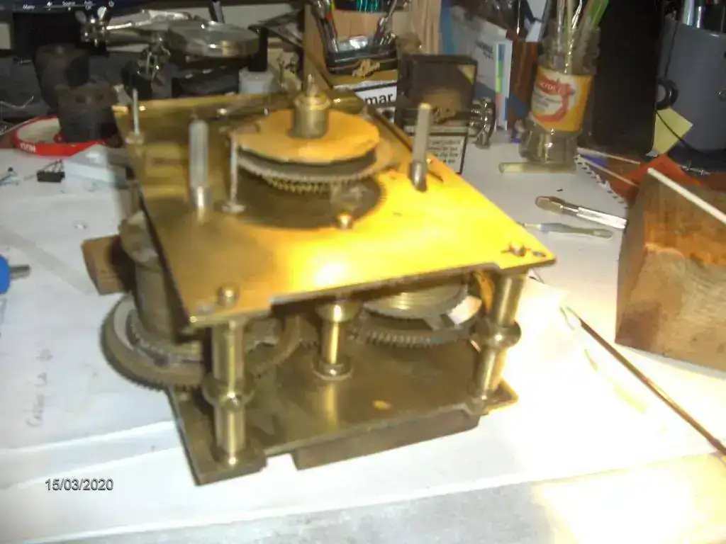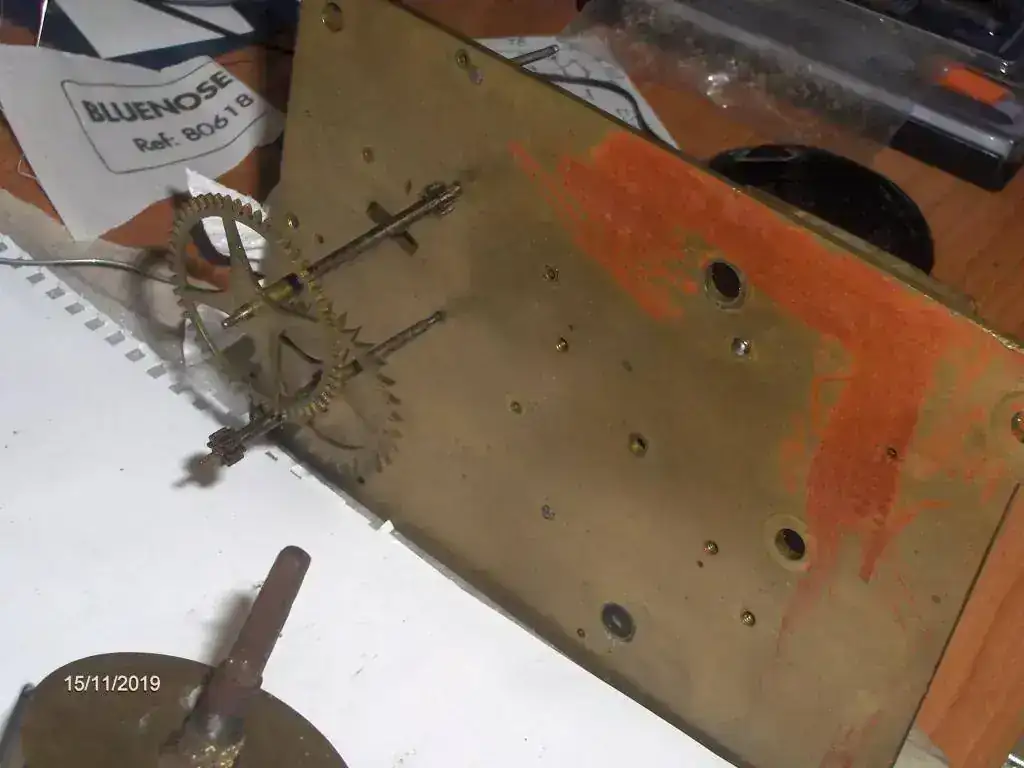 Limpiado y revisado, no había ninguna pieza dañada, lo único que todavía no tiene es la palanca/mecanismo para activar/desactivar sonería que tengo pendiente de diseñar/fabricar.