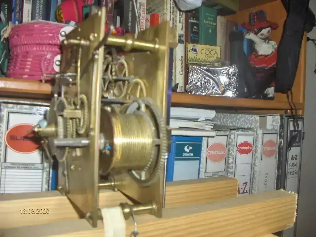 También tardé un tiempo en obtener en subasta unas pesas acorde a los kilos que algunos compañeros me habían indicado previamente (gracias de nuevo) . Son 2 pesas de 4.6 y 3.9 kg que funcionan correctamente. Por si es de interés un recorrido de 30 cm equivale a 54 horas. Al final va a tener unos 120 cm de recorrido con lo cual va a tener 8/9 dias de autonomia