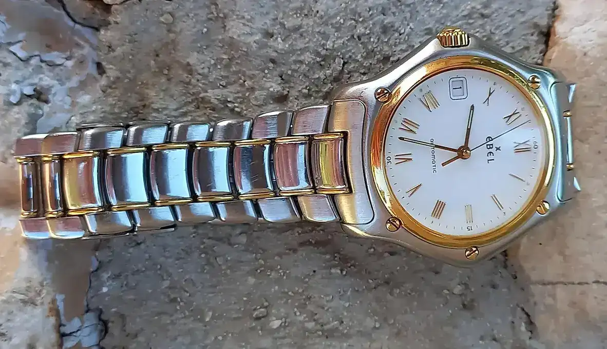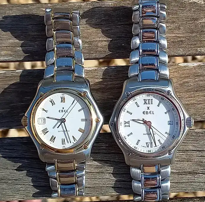 Ebel 1911 en una configuración especial para zurdos/destro. La corona y la fecha se han cambiado al lado de las 9 en punto para que se pueda usar en la muñeca derecha. Bueno, el "normal" tambien se puede usar en la mano derecha.