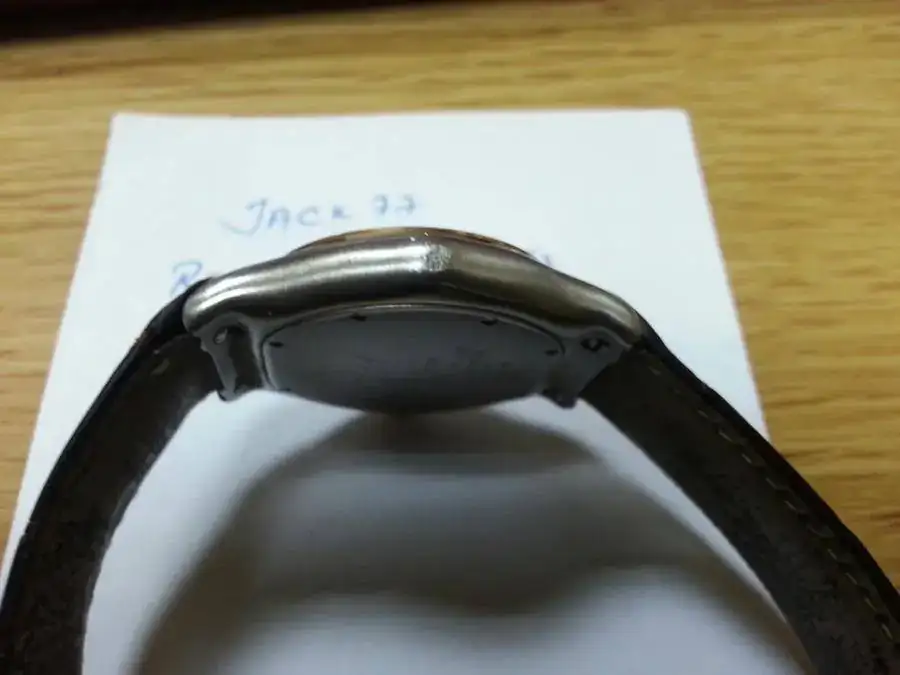 creo que es de 39 mm, no tengo la caja ni papels. el reloj tiene una golpe en un lado que se ve en una de las fotos.