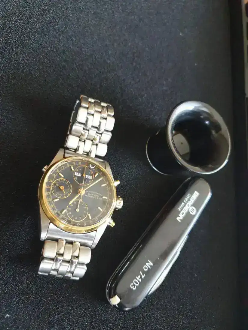 Es un modelo bastante raro de ver y que monta un fantástico calibre ETA 7750 modificado. La maquinaria está limpísima. Estoy muy abierto a cambios, tanto de precios inferiores como superiores.