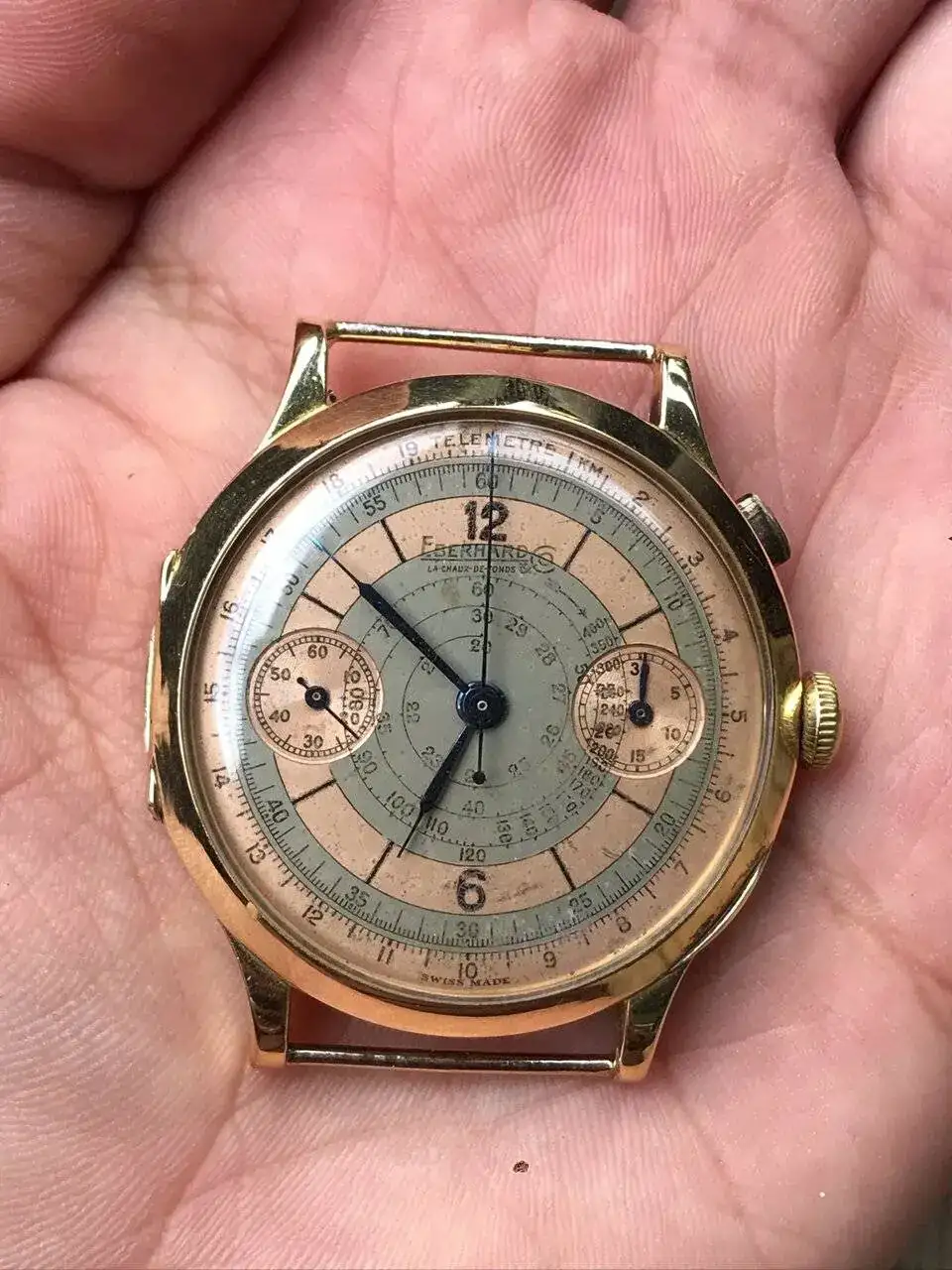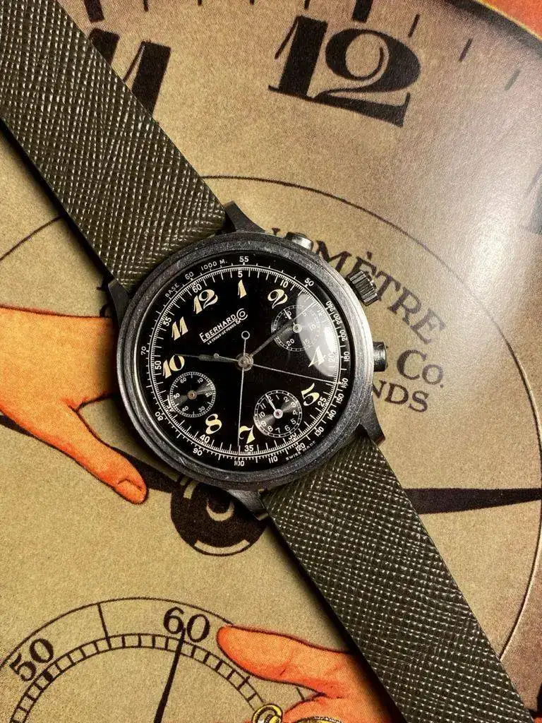 Curiosamente, aunque en España no es una marca que levante pasiones, Eberhard cuenta con una legión de seguidores en Europa, sobre todo en Italia. De hecho, creo que salvo por precio, la experiencia es tremendamente parecida -para mal- a la de comprar un Rolex vintage, y es que, un porcentaje importante de los relojes que podéis ver en línea tienen diales rehechos, o que no se corresponde con el modelo (y que la comunidad acepta).