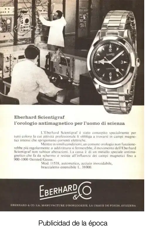 El modelo en cuestión, fue reeditado por Eberhard en 2021, como conmemoración del 60 aniversario del lanzamiento del primer Scientigraf en 1961. El contexto en el que se desarrolla el reloj, fue el de dar respuesta a un fenómeno cada vez más presente en la época y que tenía efectos negativos en la precisión de los relojes mecánicos: los campos magnéticos.