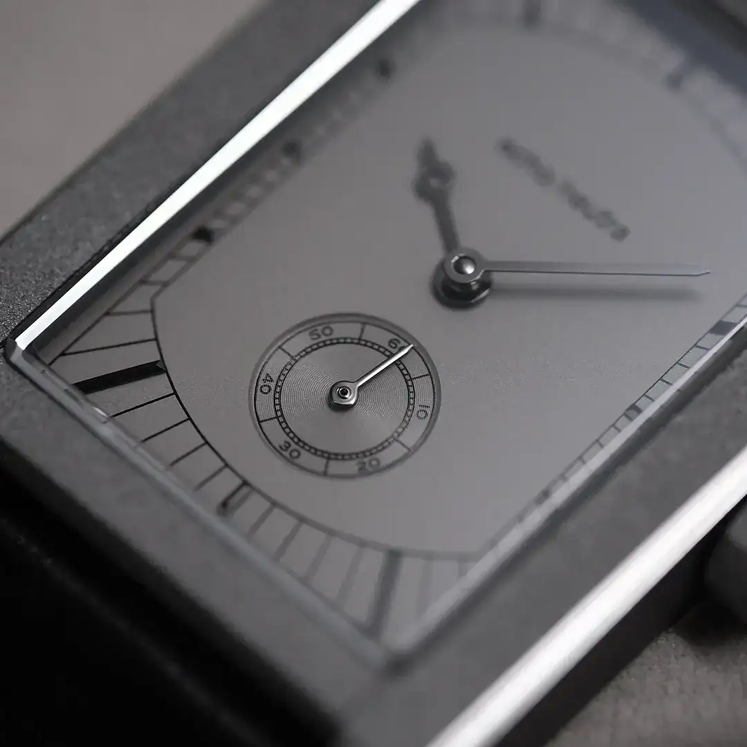 Ese rectángulo de titanio granulado con su cristal biselado y esa esfera clásica me siguen fascinando.