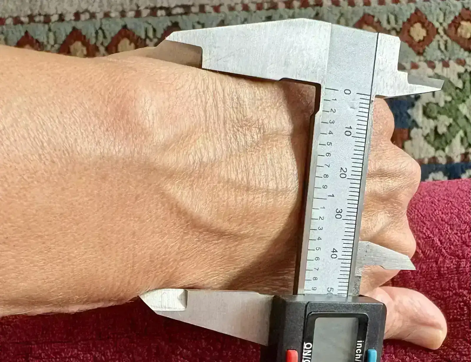 ¡Egun on, Abde!¡Hola reina! Pues mi muñeca son 14cm escasos, aunque es bastante planita (no redonda) así que tengo bastante superficie de apoyo. Y no, para nada me pareció excesivo el Rivanera en mi muñeca; me lo vi tentadoramente bien y perfectamente asentado