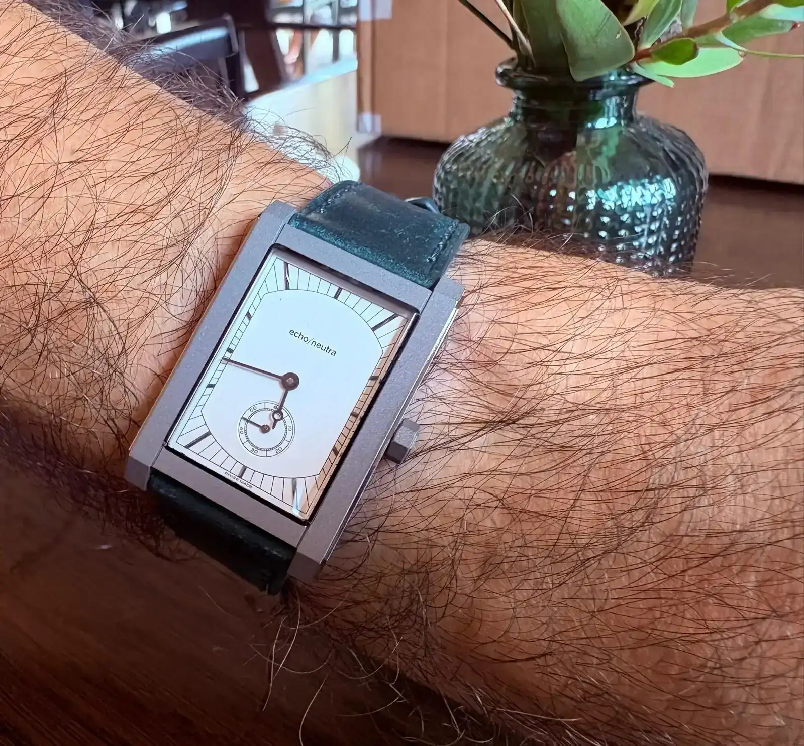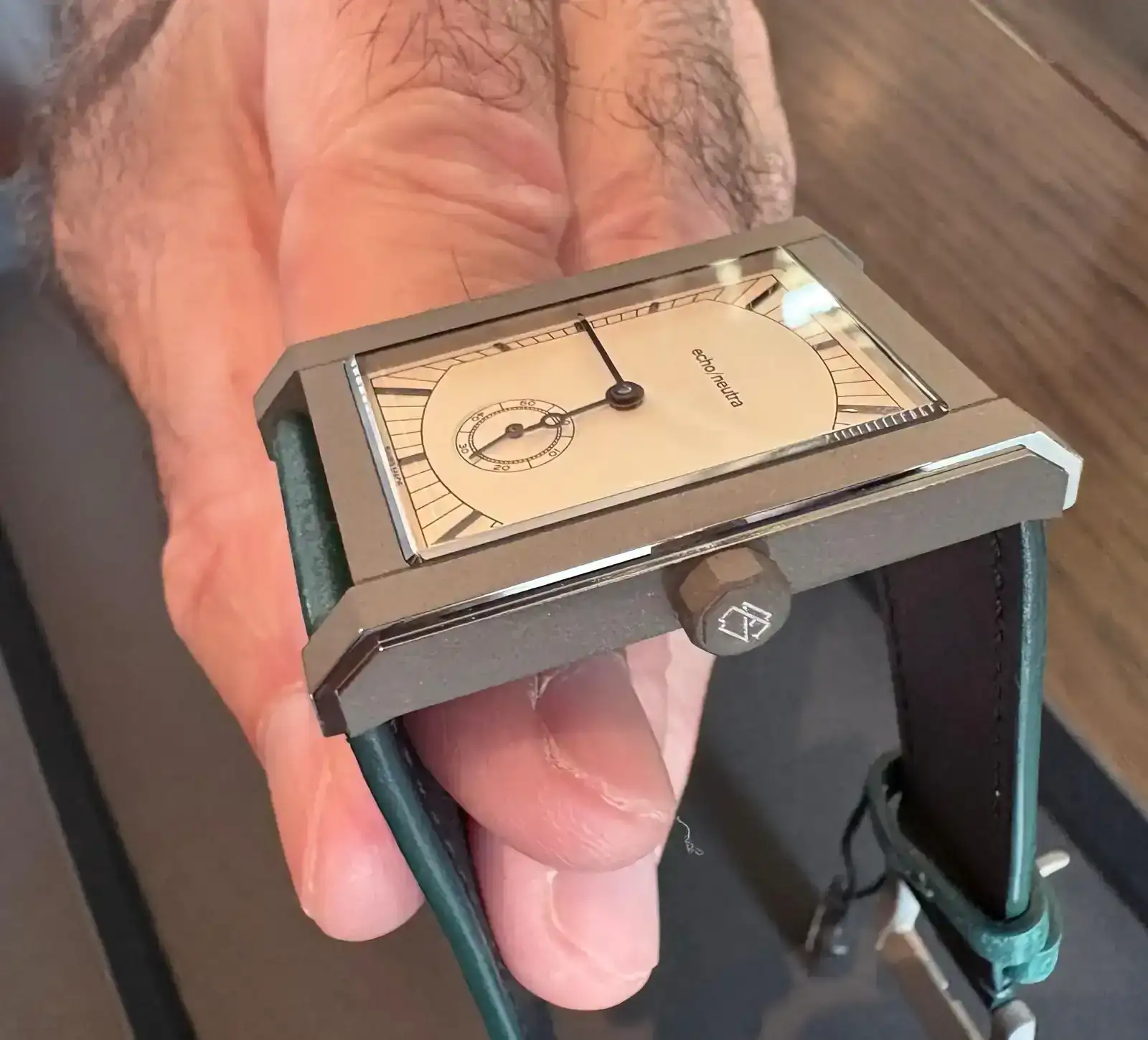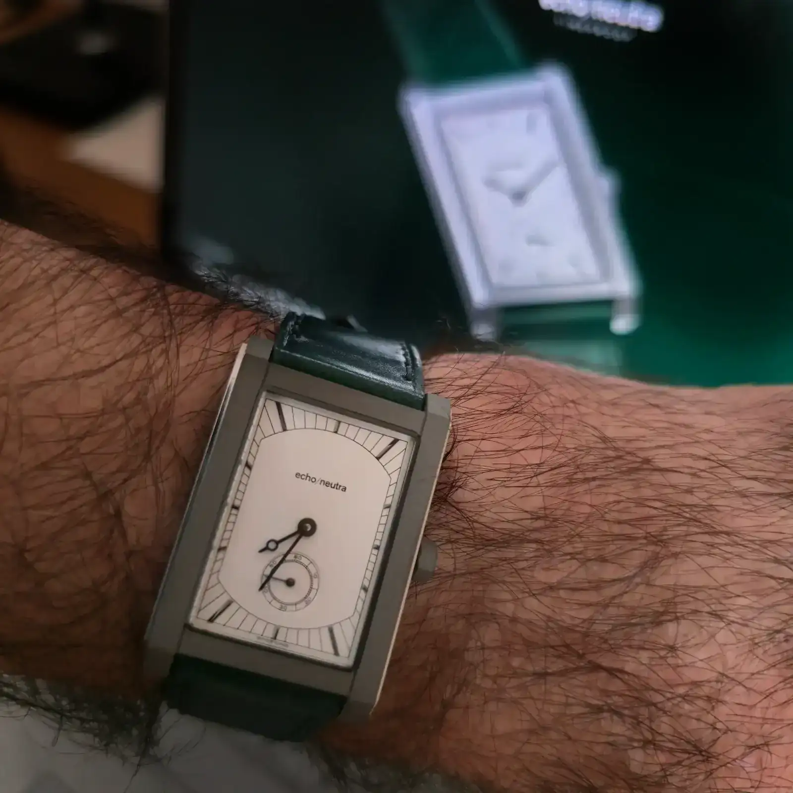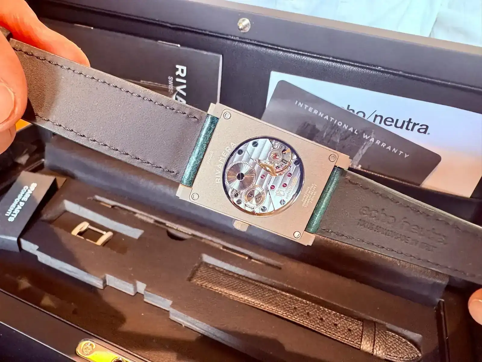 ¡Enhorabuena, Alfonso!Pues ya está aquí. Una pequeña preciosidad, llena de detalles, como el pulido del pequeño escalón que tiene el lateral de la carrura. Trae una hebilla de repuesto y una correa negra, sin hebilla.