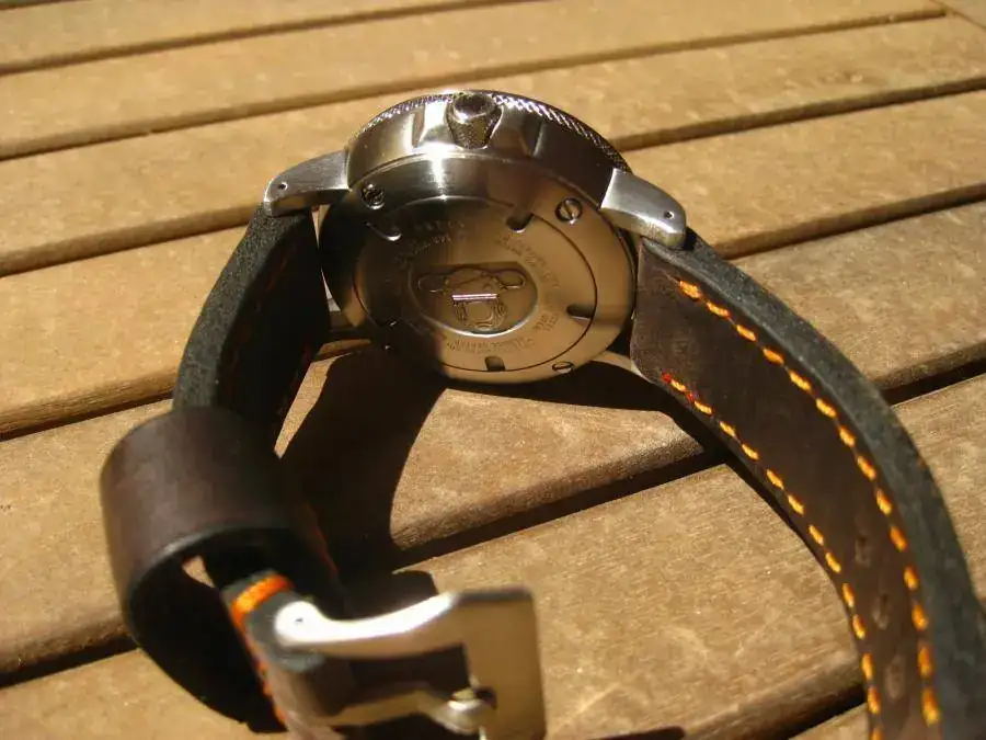 Se incluye: caja en forma de bombona de oxigeno, caucho original, adaptadores suppaparts de 24mm de acero inox y la correa vintage de piel que veis en las fotos.