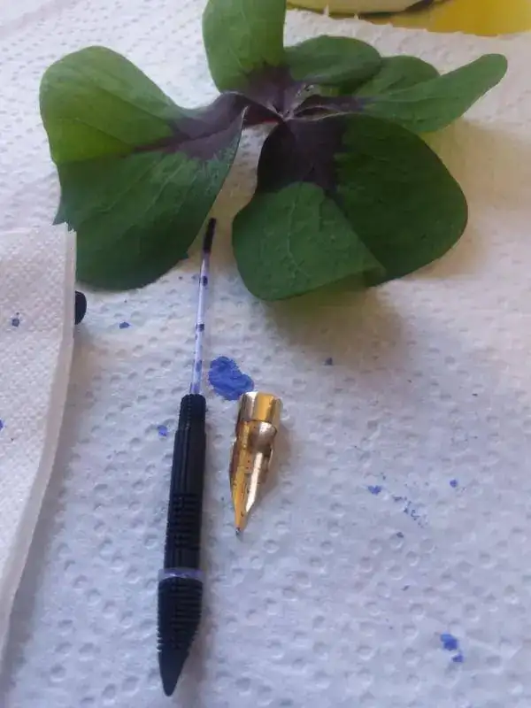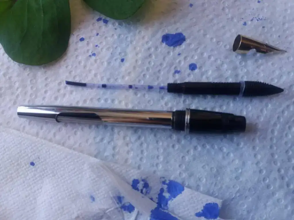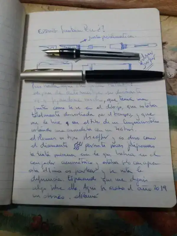 por donde se une el plumin y el cuerpo, busque informacion para el desmonte pero nada encontre y como siempre a la aventura. Que ,e gusta mancharme los dedos de tinta!