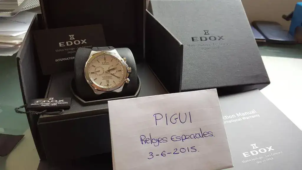 3.Garantia: En blanco (sin firmar tanto por el vendedor y sin fecha, es decir, que salvo que tengas un amigo en una joyeria con venta de Edox, no sirve, es como si no la tuviera).