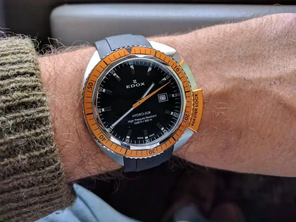 Vendo o cambio este reloj Edox hydro sub por que no acabo de hacerme a su tamaño. Me pasa con todos los relojes de mas de 43mm. Por mucho que me guste su estetica, no los veo en mi muñeca.