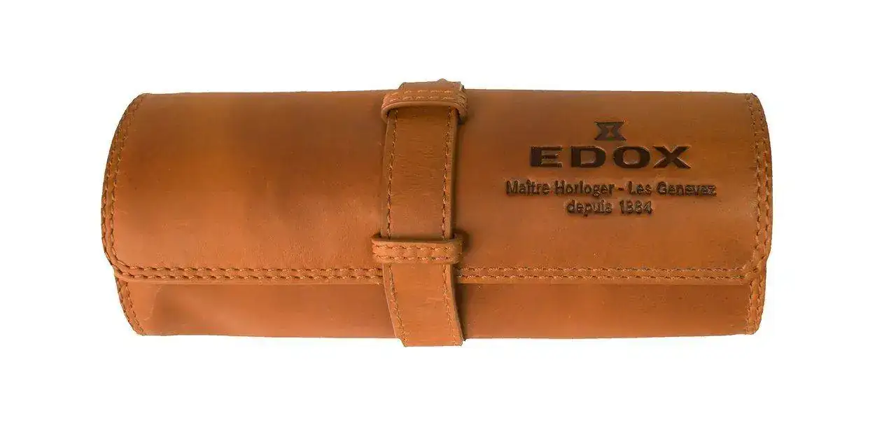 La corona de gran tamaño y el cristal abombado -ahora de zafiro- caracterizan al SkyDiver diseñado por Edox en la década de 1960. Se completa con un bisel unidireccional de cerámica y presenta una resistencia al agua hasta 300 metros. La corona es roscada con una junta ("o-ring) doble. Caja de acero de 42mm con fondo ciego.