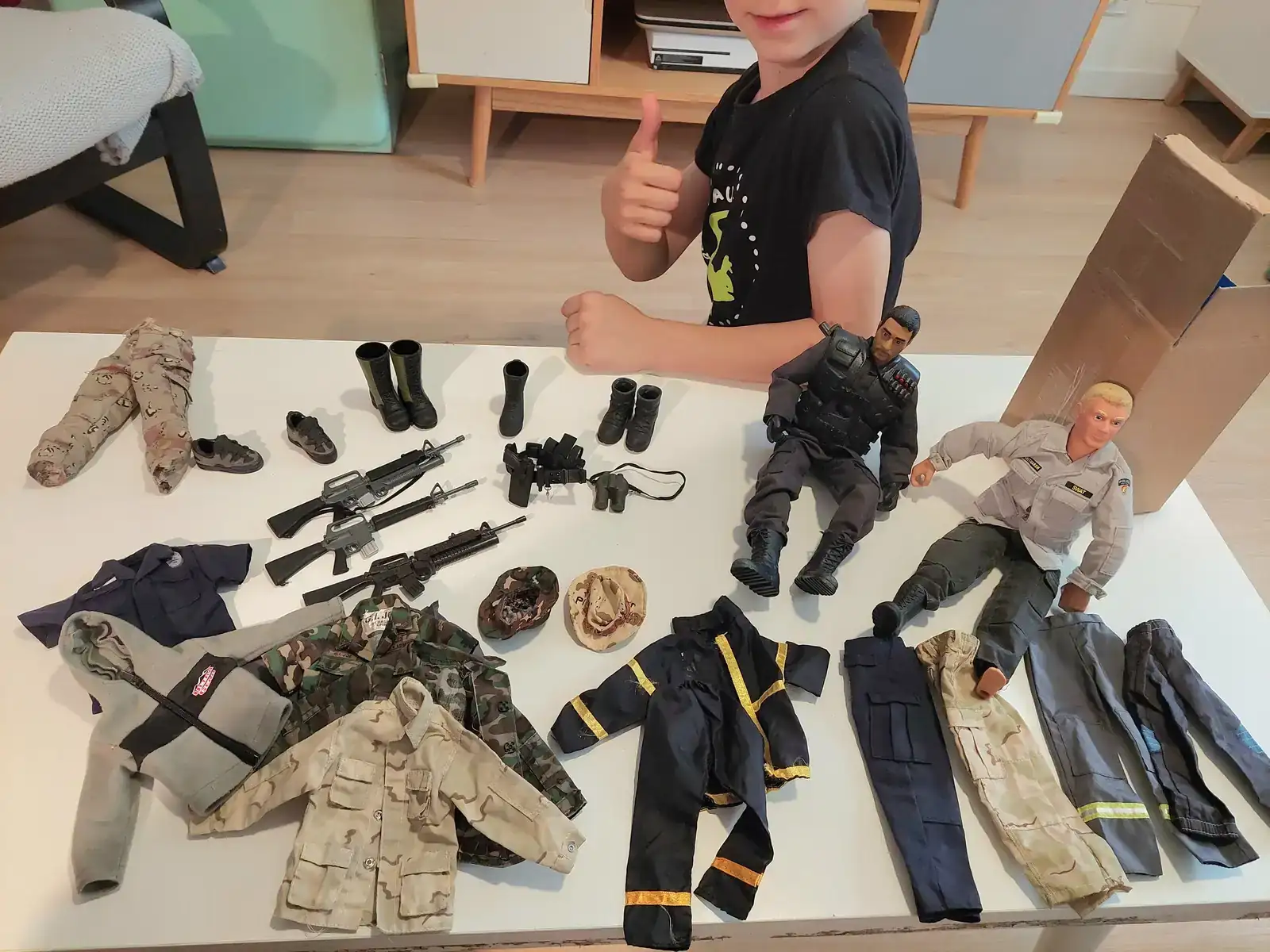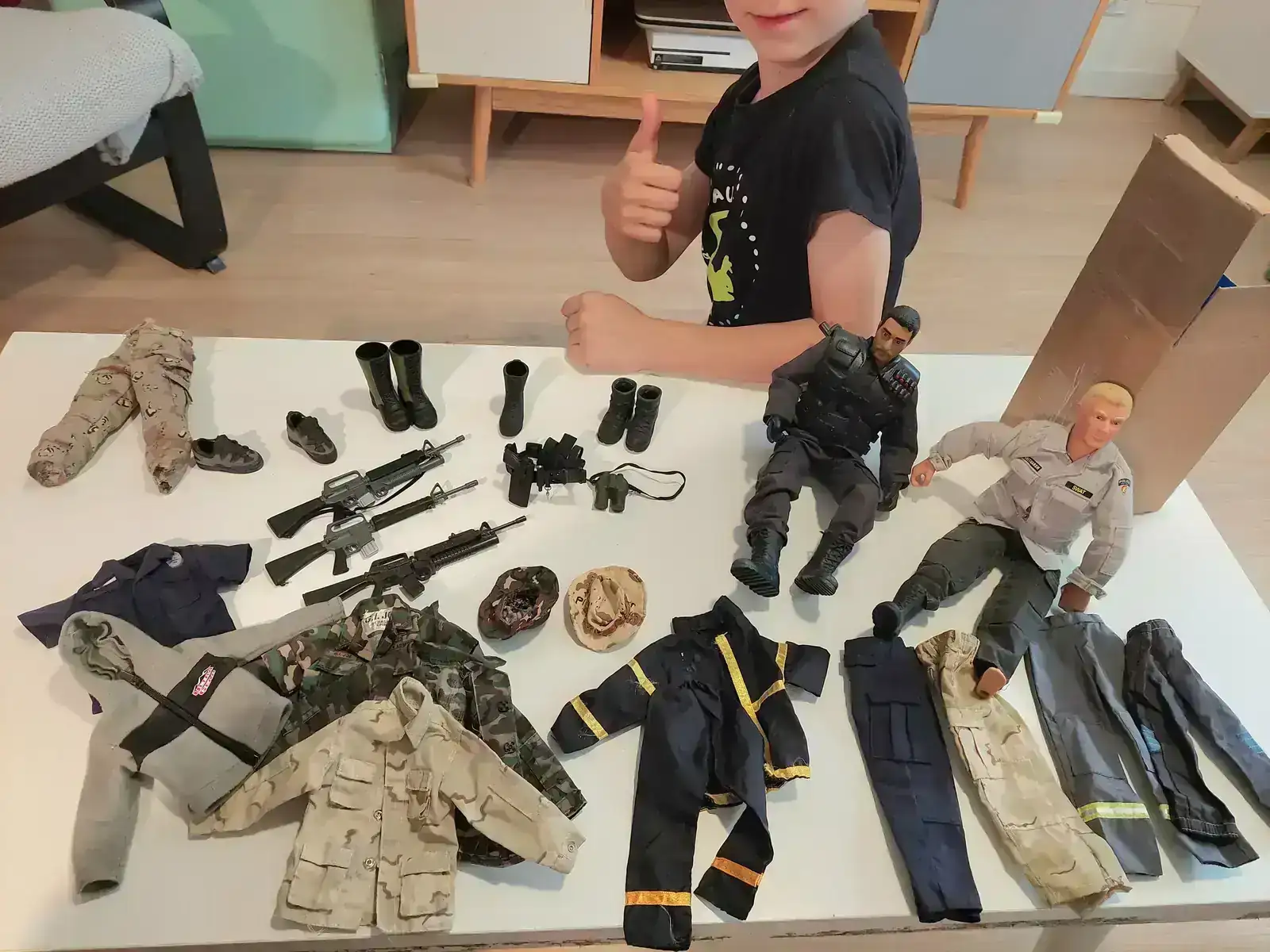 Yo ya le había contado a mi hijo que uno de los foreros con los que papá habla de relojes en Internet, le iba a regalar algún uniforme para sus muñecos, así que lleno de nervios se ha sentado conmigo para abrir el paquete.