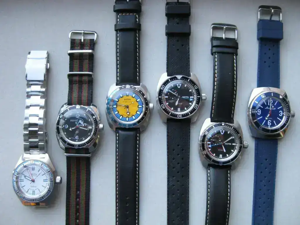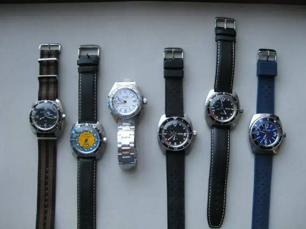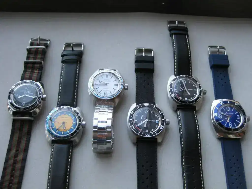 Adjunto los otros dos Vostock que también compré en el Foro, en el FCV, y que están por el mundo en la muñeca de quienes se los he regalado: