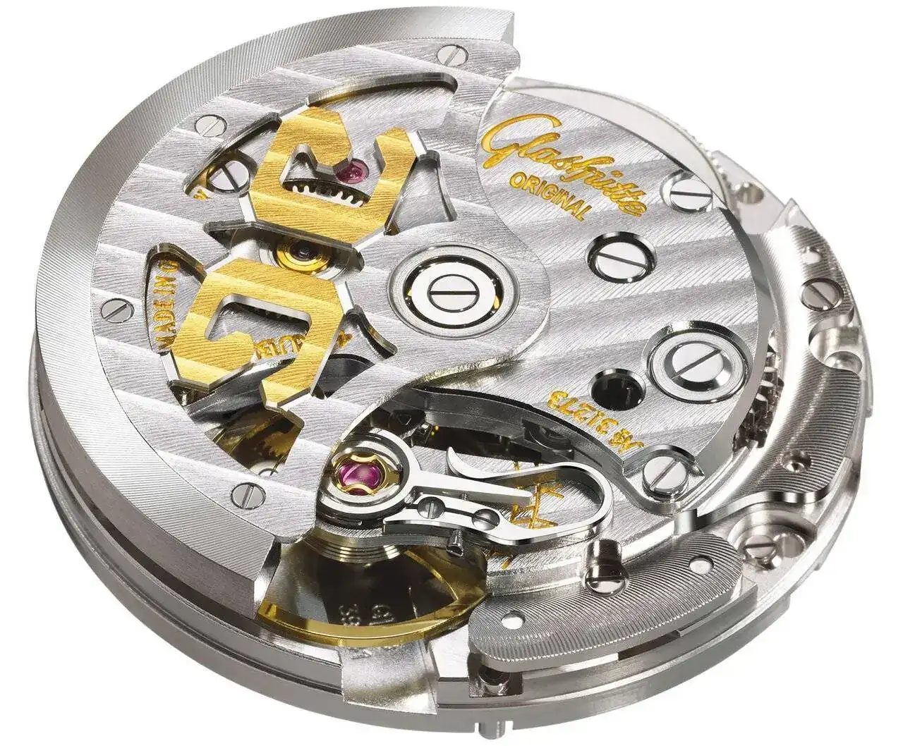 - Glashütte tres cuartos platina con acabado en barras