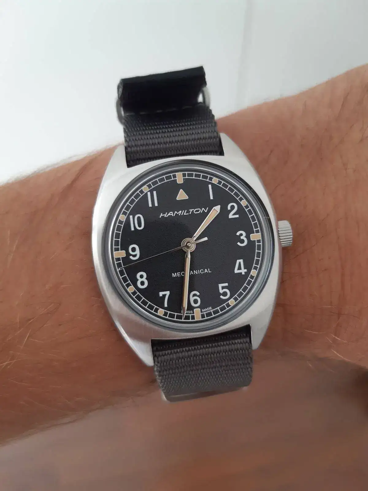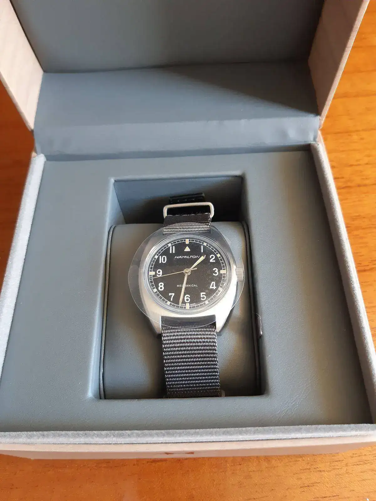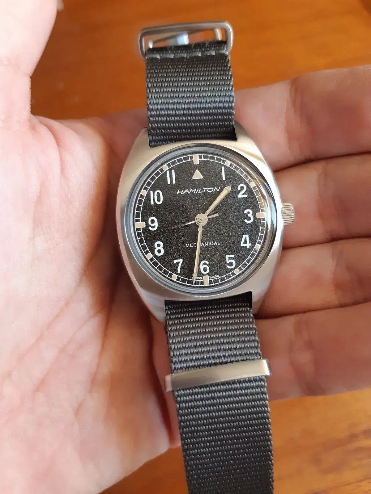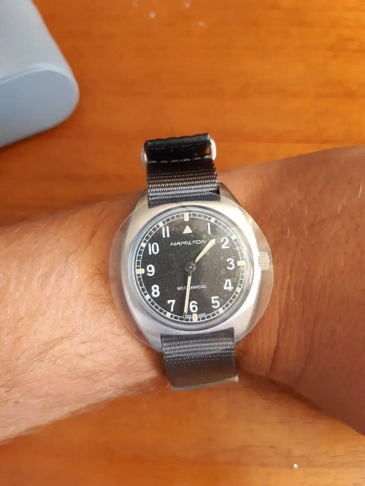 Después de algo más de un año de incontinencia, he caido. Hacia tiempo que iba detrás de un reloj de corte militar/aviador. A este le tenía puesto los ojos desde que salió, pero su tamaño me hacía dudar, necesitaba verlo en vivo...