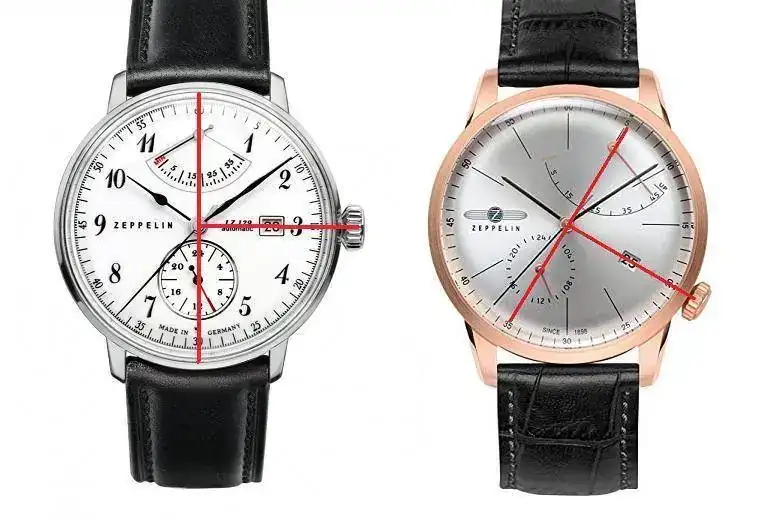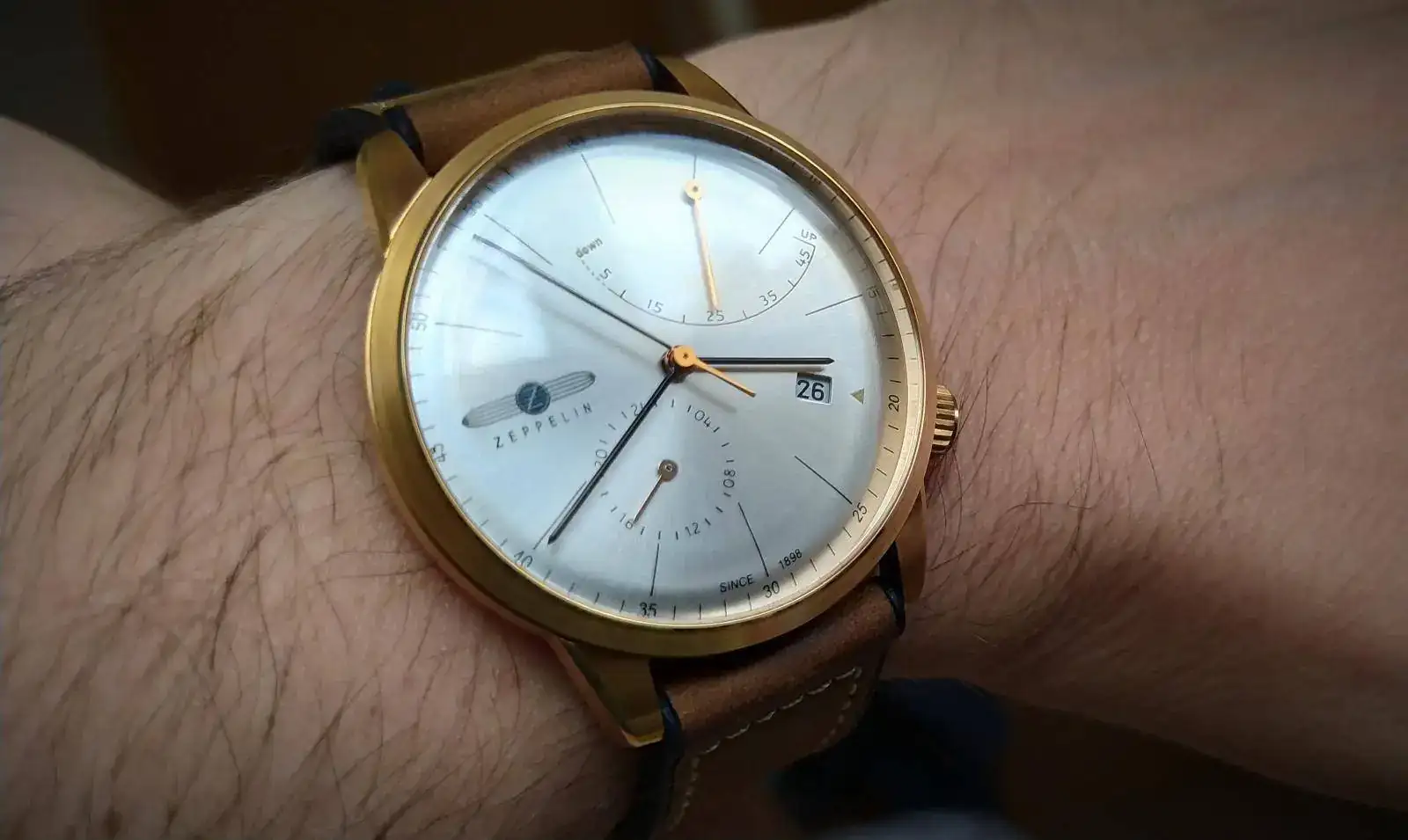 Los índices son rectos de tipo bastón y pintados de negro, tiene indicador de 24 horas en la parte inferior izquierda y reserva de marcha en la superior derecha, la flecha a las 4 y el logo a las 9, la aparente anarquía a la hora de repartir los elementos en la esfera es lo que más me gustó pues da un toque moderno en contraposición a lo clásico de la estética general del reloj.
