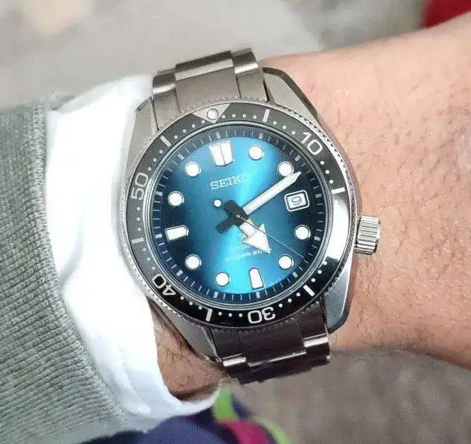 El último en llegar (adquirido en el foro), tendrá sobre todo un uso veraniego: el Seiko Great Blue Hole, un reloj de 44mm tremendamente cómodo en mi muñeca de 17.