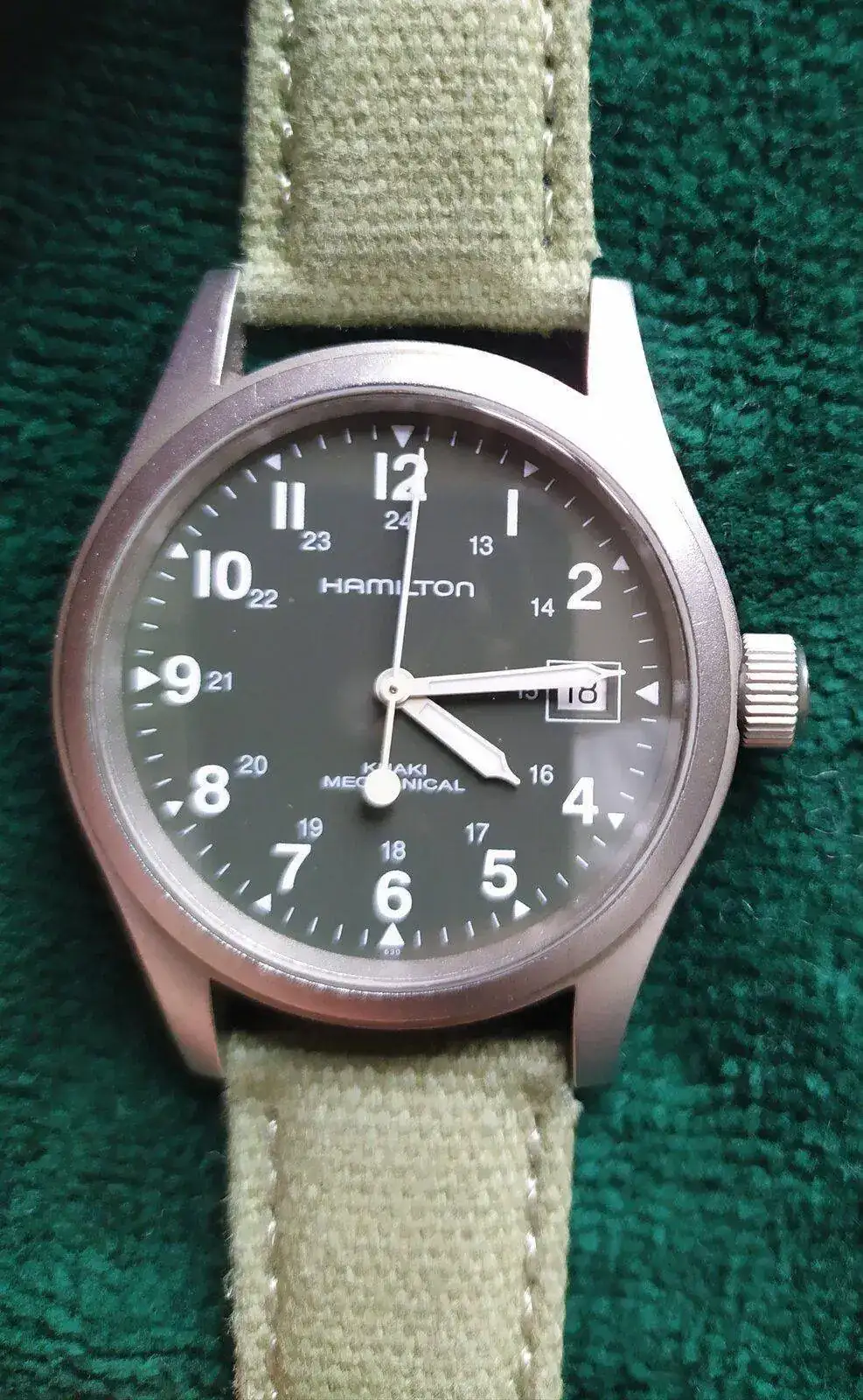 El Hamilton Khaki Field Mechanical de 38 mm, fue muy deseado. Un reloj que da muchísimo por su precio y que su distancia entre asas (lug to lug) lo hacen abultar más de lo que debería. Lo uso bastante, casi todos los fines de semana, cada vez que estoy en el campo:
