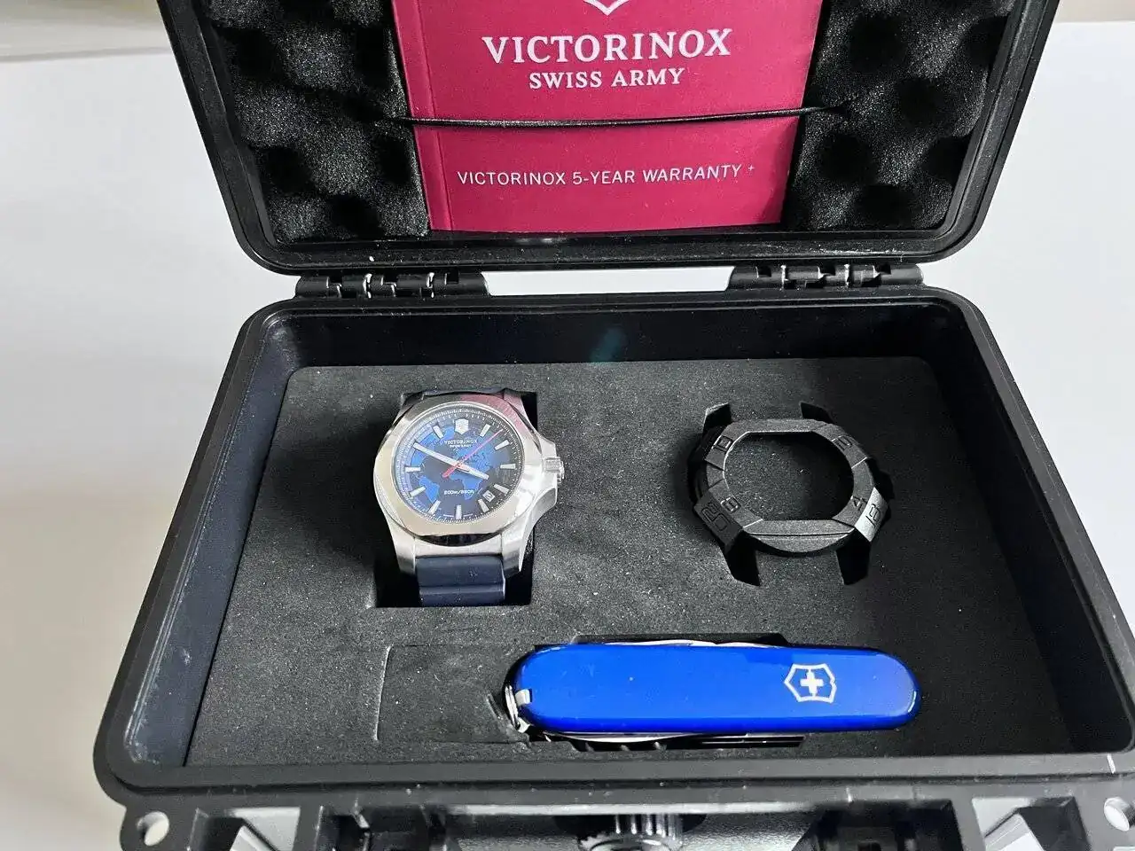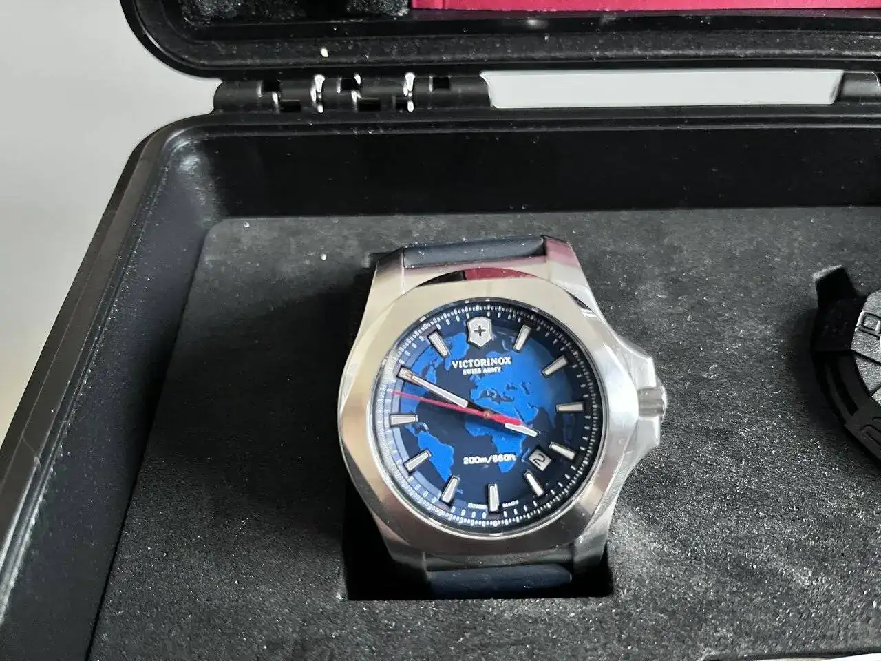 Hace tiempo que llevaba buscando un cuarzo que no se fuese de presupuesto,duro,robusto,un reloj que aguante lo que le echen, que si se llevaba un golpe o un rayón no me diese una taquicardia,,pero principalmente para que diese descanso a mi Casio Oak en mis salidas montañeras,apareció este Victorinox Inox y me encantó la presencia del reloj,la sensación de solidez y robustez,me lo dejaron a buen precio y se vino para casa.