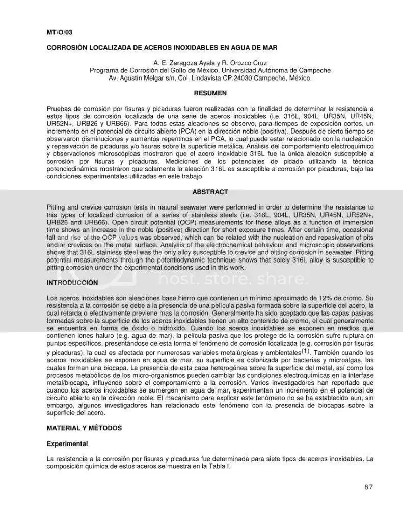 Donde podemos ver referenciado el dato de la concentración de ion cloruro que soporta el 316L antes de iniciar la corrosión: 585ppm