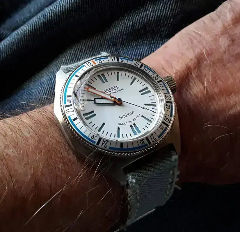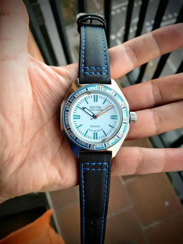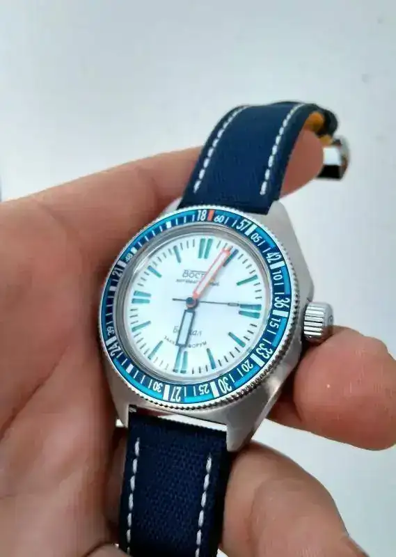 ) no creo que esta correa hubiera quedado nada bien: la ventaja del aluminizado es que puede combinar perfectamente con multitud de correas y puños de camisa. Por otra parte es un bisel más "todoterreno" y no exclusivamente veraniego como habría sido el blanco. de hecho creo que juega mejor con ropa de invierno que el azul, que sí que veo más a propósito para la indumentaria más desenfadada del verano.