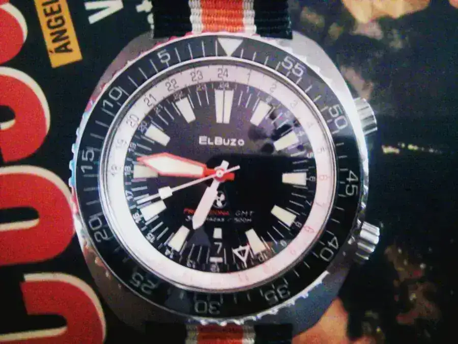 - - Dos esferas de diseño exclusivo. Negra (es la que lleva puesta) y naranja. Leyenda Profesional GMT y la indicación de profundidad en Brazas españolas y en metros ( 300 brazas / 500 metros ).