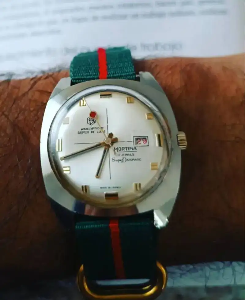 Gracias , creo que lo he visto en esa terminación ¿ la segundera verde? , lo poco que se , es que es marca francesa y más o menos de los 70 , yo lo rescaté del rastro , sin la aguja de los segundos y plexy rajado, paso por relojero y a funcionar perfectamente .Precioso tengo uno igual aunque con el dial plateado pero ni idea de su historia