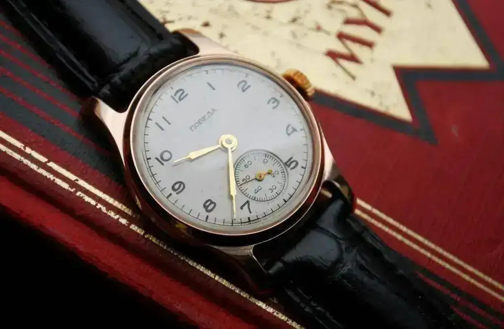 Bueno, aparentemente un Pobeda como este 34-K fue en primero reloj en el espacio, antes del Sturmanskie de Gagarin.