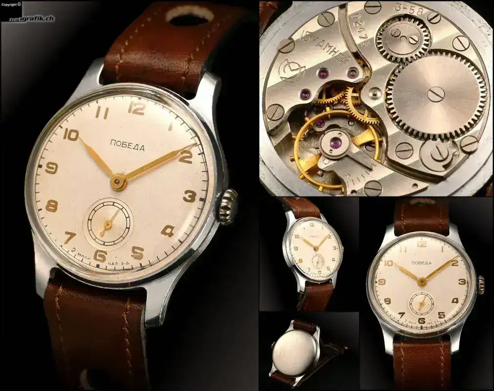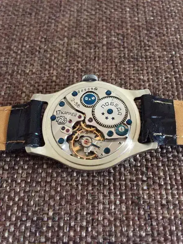Se que hay Pobedas con 17 rubíes y antichock, pero como podéis ver en la siguiente fotografía los fabricados en 1958 aun montaban 15 rubíes y sin antichock y este que tengo es del año 1956. La foto esta sacada de Internet.